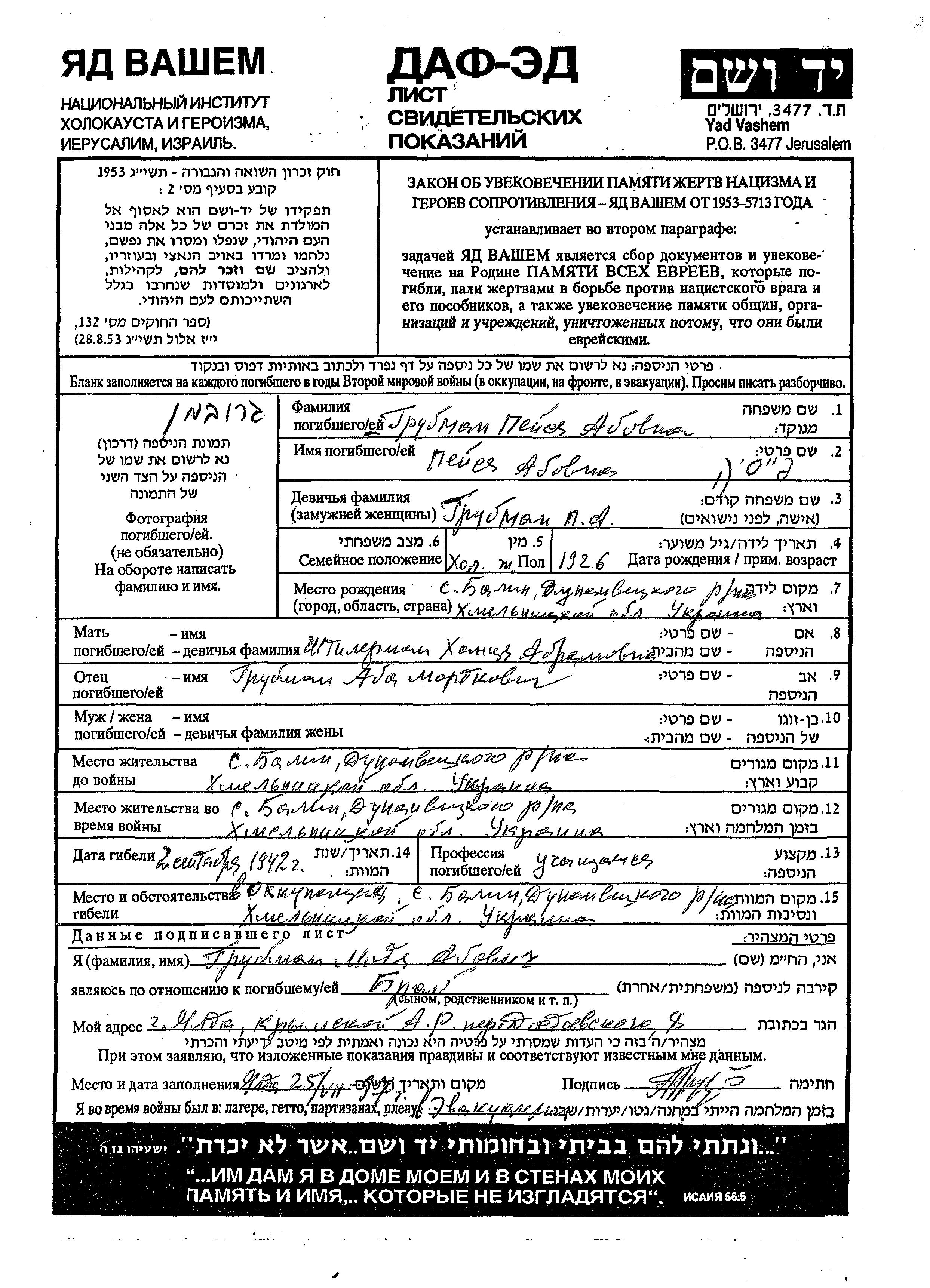 Grubman Motya Balin, Ukraine (USSR) Page of Testimony