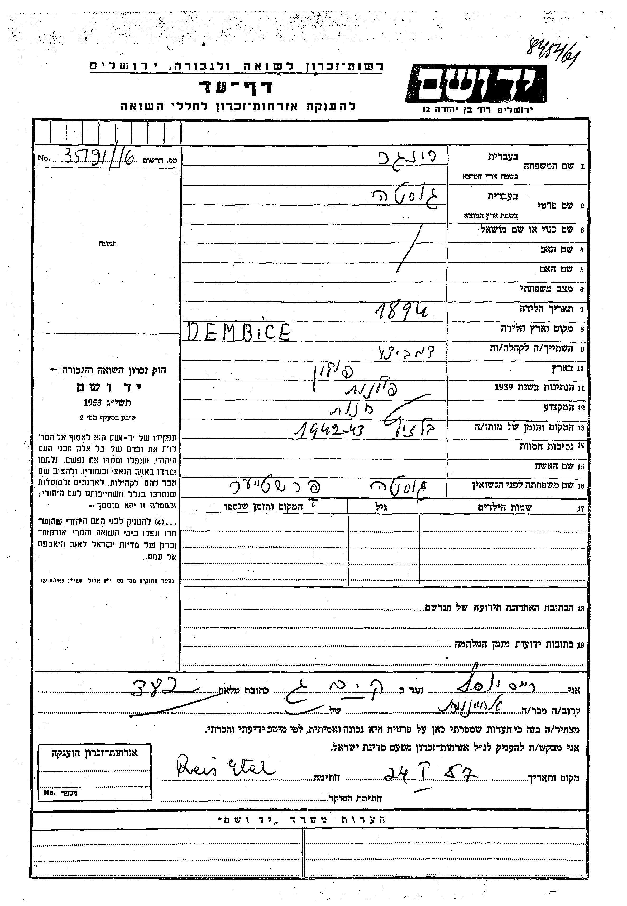 Yad Vashem - Pages of Testimony Names Memorial Collection