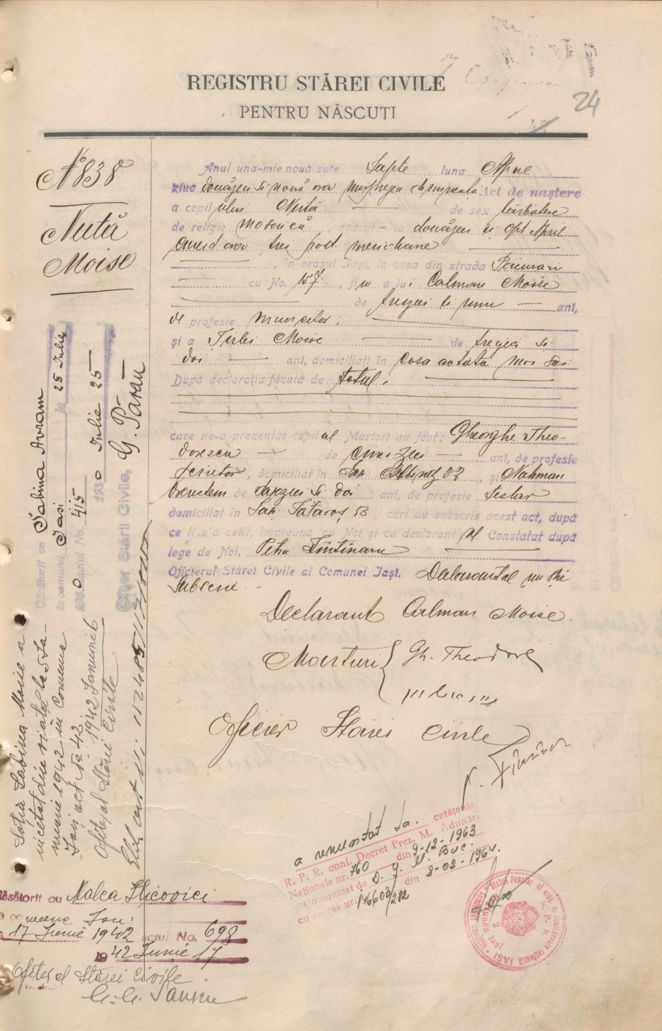 | Moise | Nuta | 1907 | Iasi, Romania | Birth certificate |