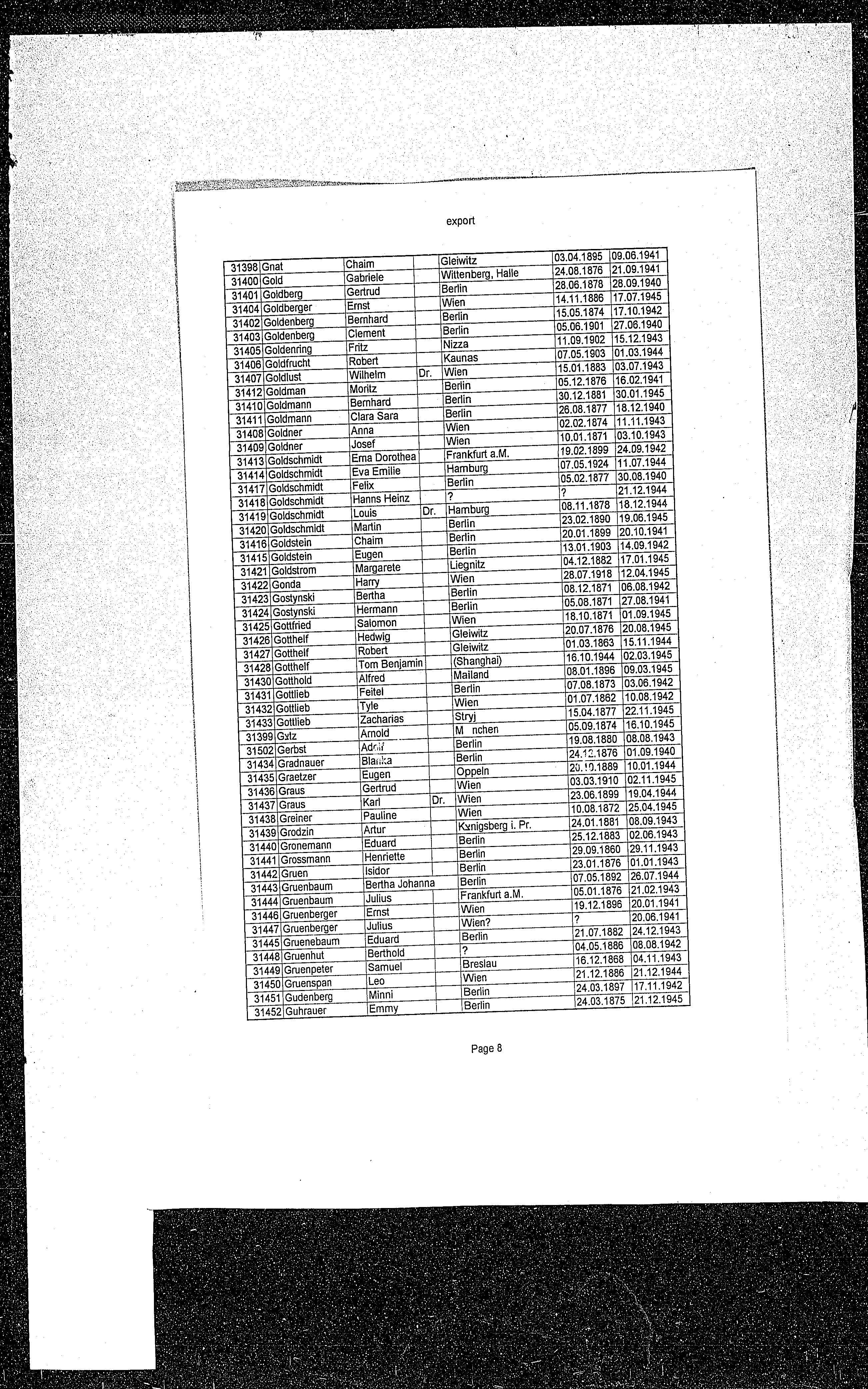 Martin Goldschmidt was born in Tuchola, Poland, 1890. Prior to WWII he lived in Berlin, Germany. Martin perished during the period 1933-1945 in indirect relation with the Shoah. Place of death: Shanghai, China, 19/06/1945.