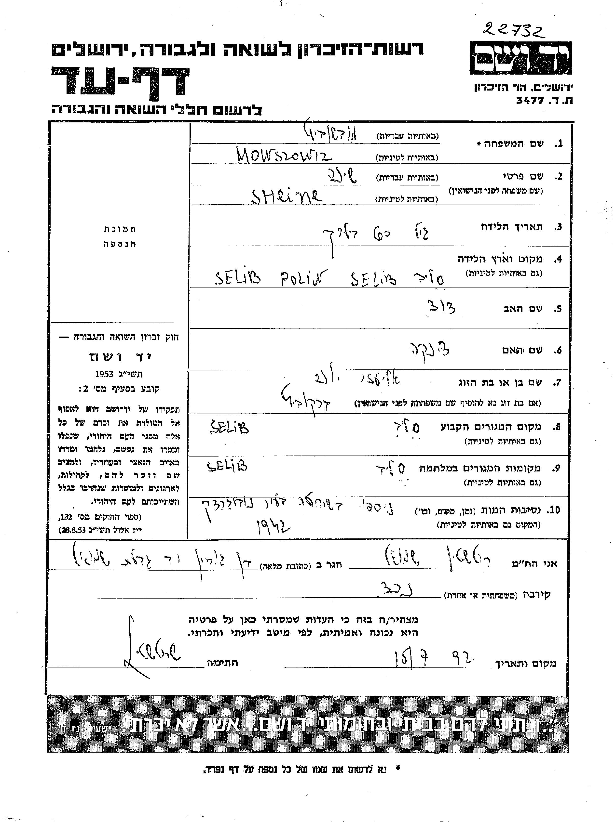 Sheine was murdered in the Shoah. Place of death: Nowogrodek, Poland, 1942.