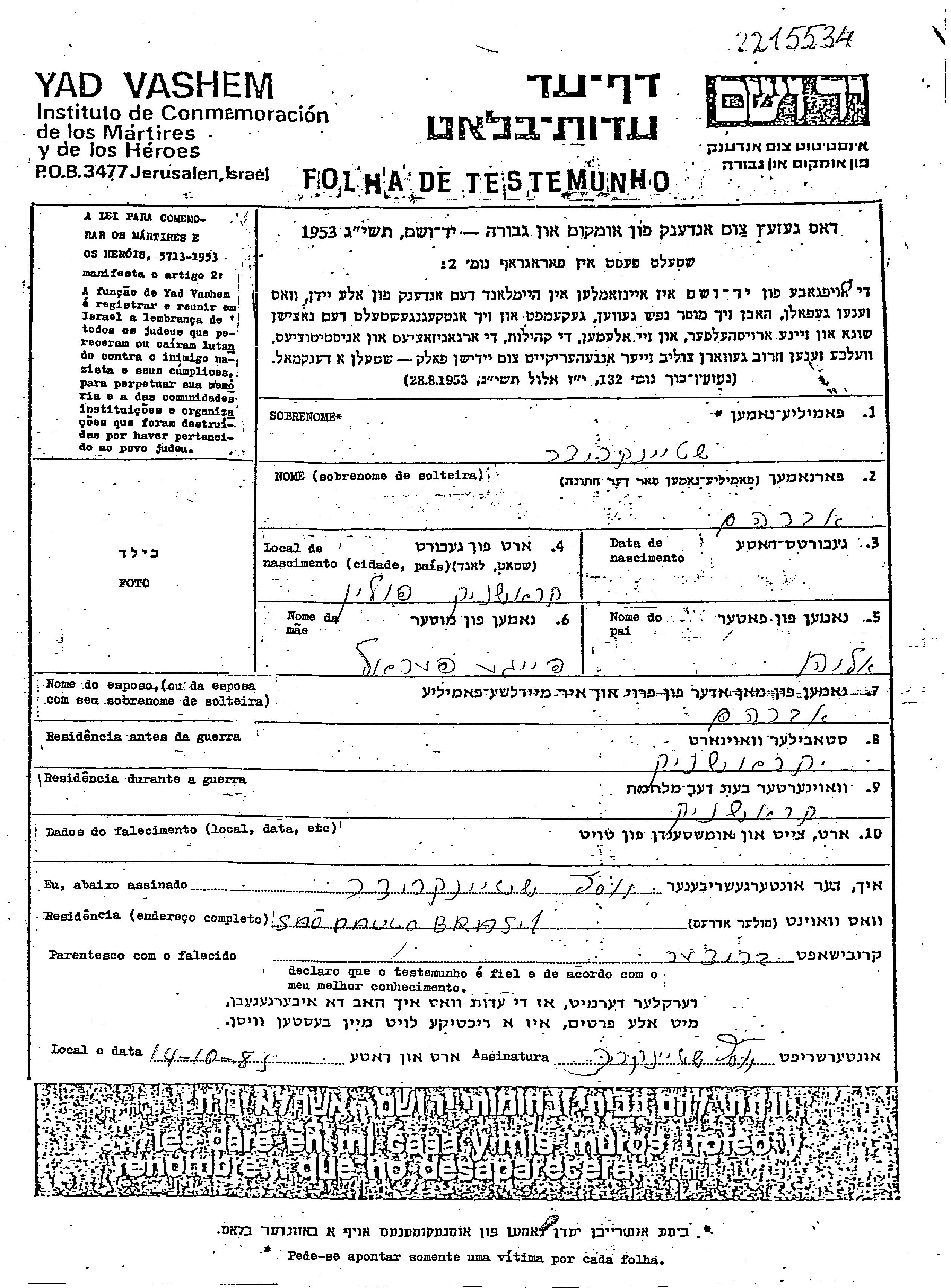 Avraham Steinkritzer was born in Kraśnik, Poland to Eliahu Eli and Feiga Perel. Prior to WWII he lived in Kraśnik, Poland. During the war he was in Kraśnik, Poland. Avraham was murdered in the Shoah.