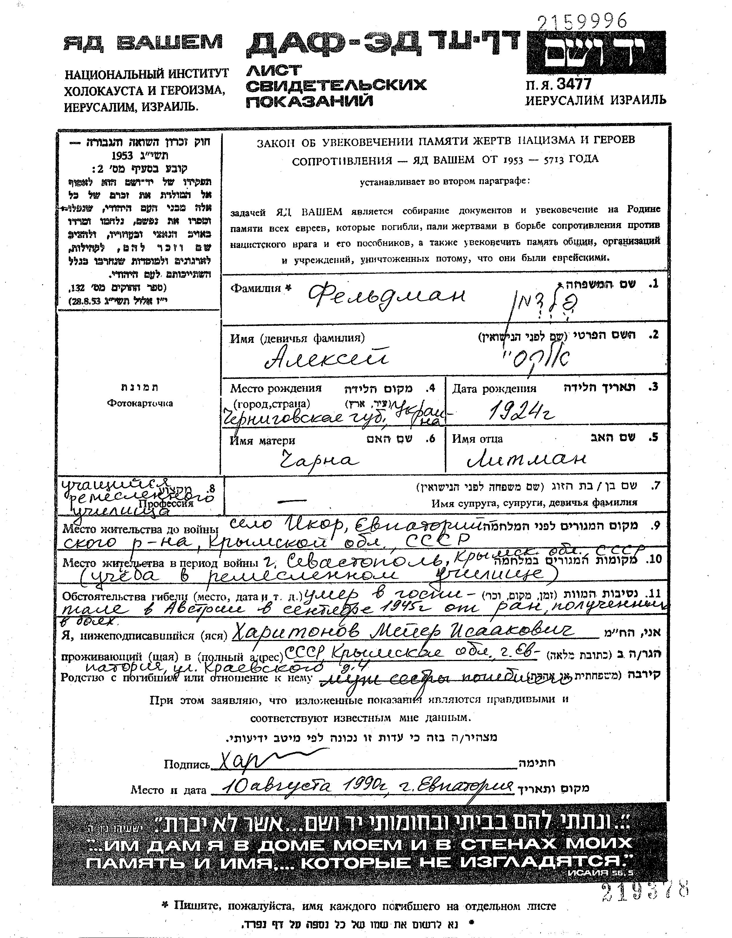 Search by last name of the submitter of the Page of Testimony, including diminutives or nicknames