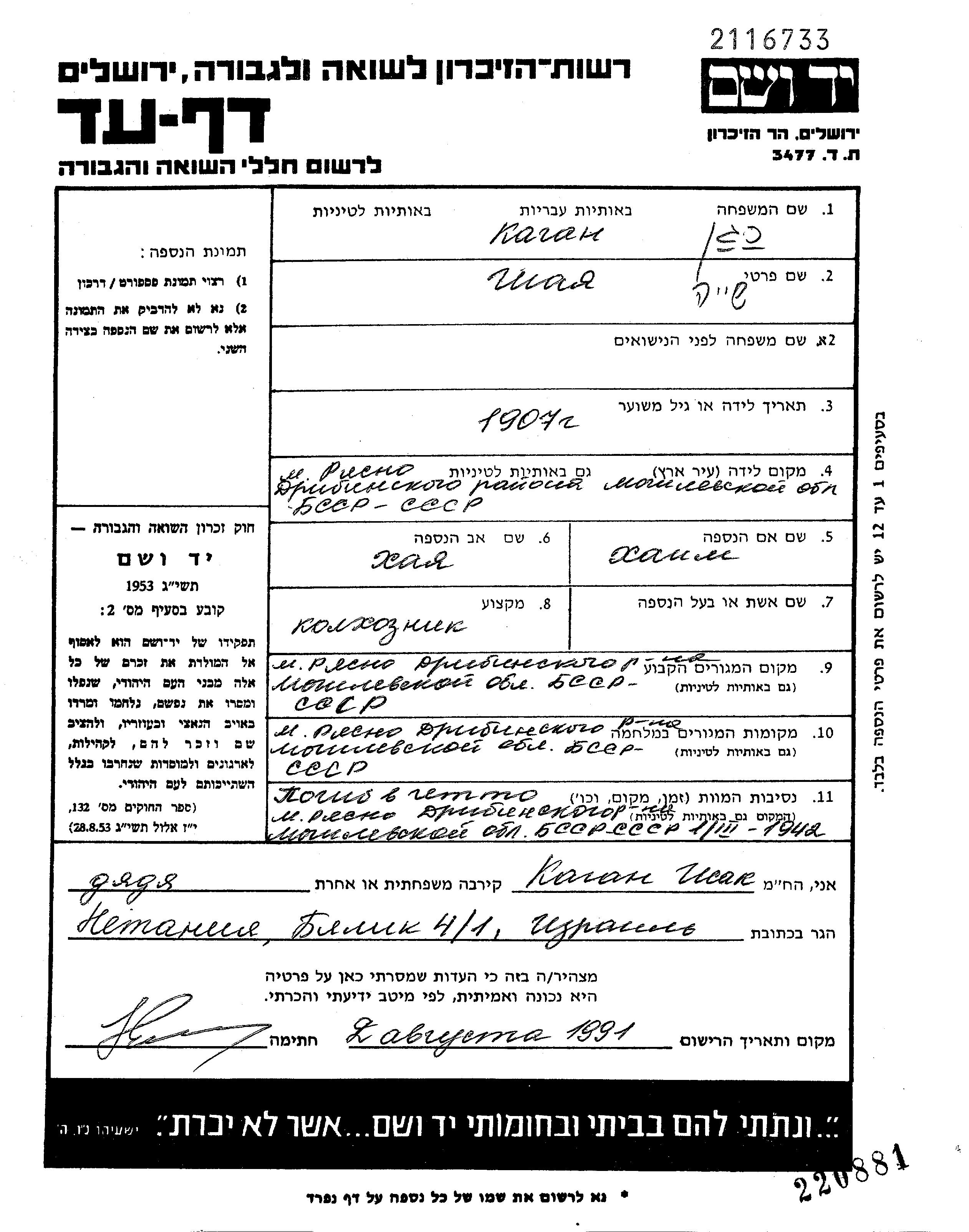 Yad Vashem - Pages of Testimony Names Memorial Collection