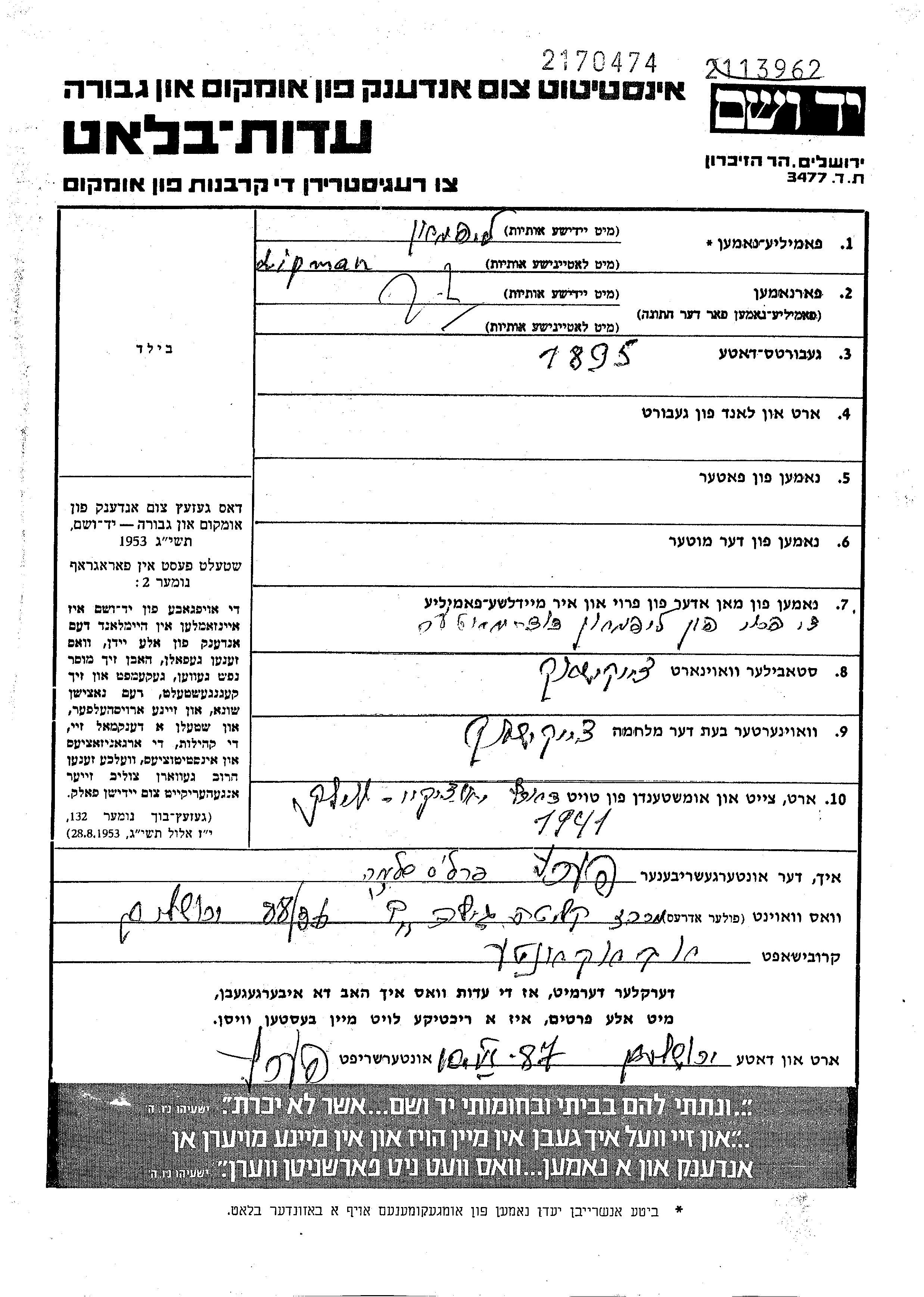 Yad Vashem - Pages of Testimony Names Memorial Collection