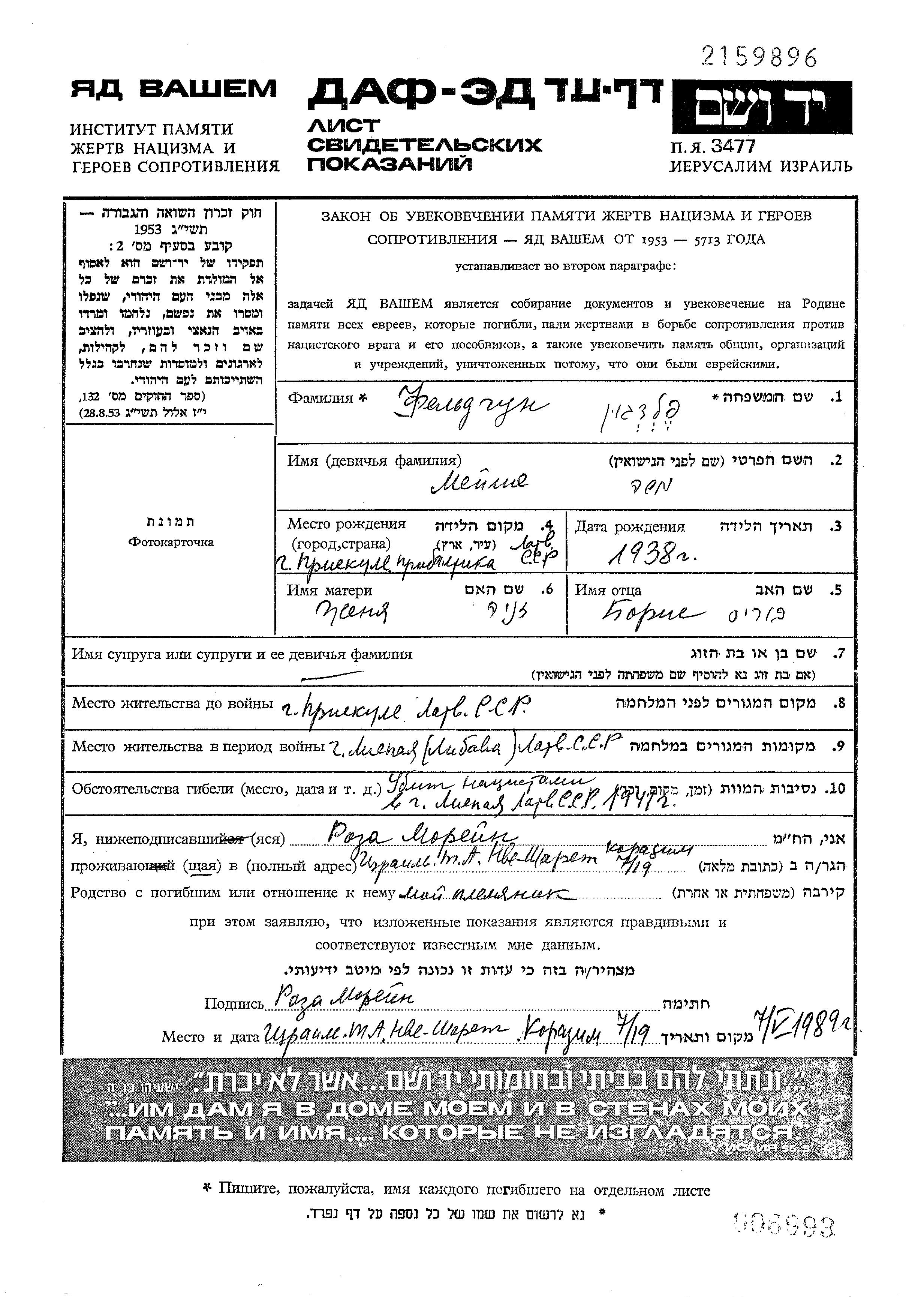 Yad Vashem - Pages of Testimony Names Memorial Collection