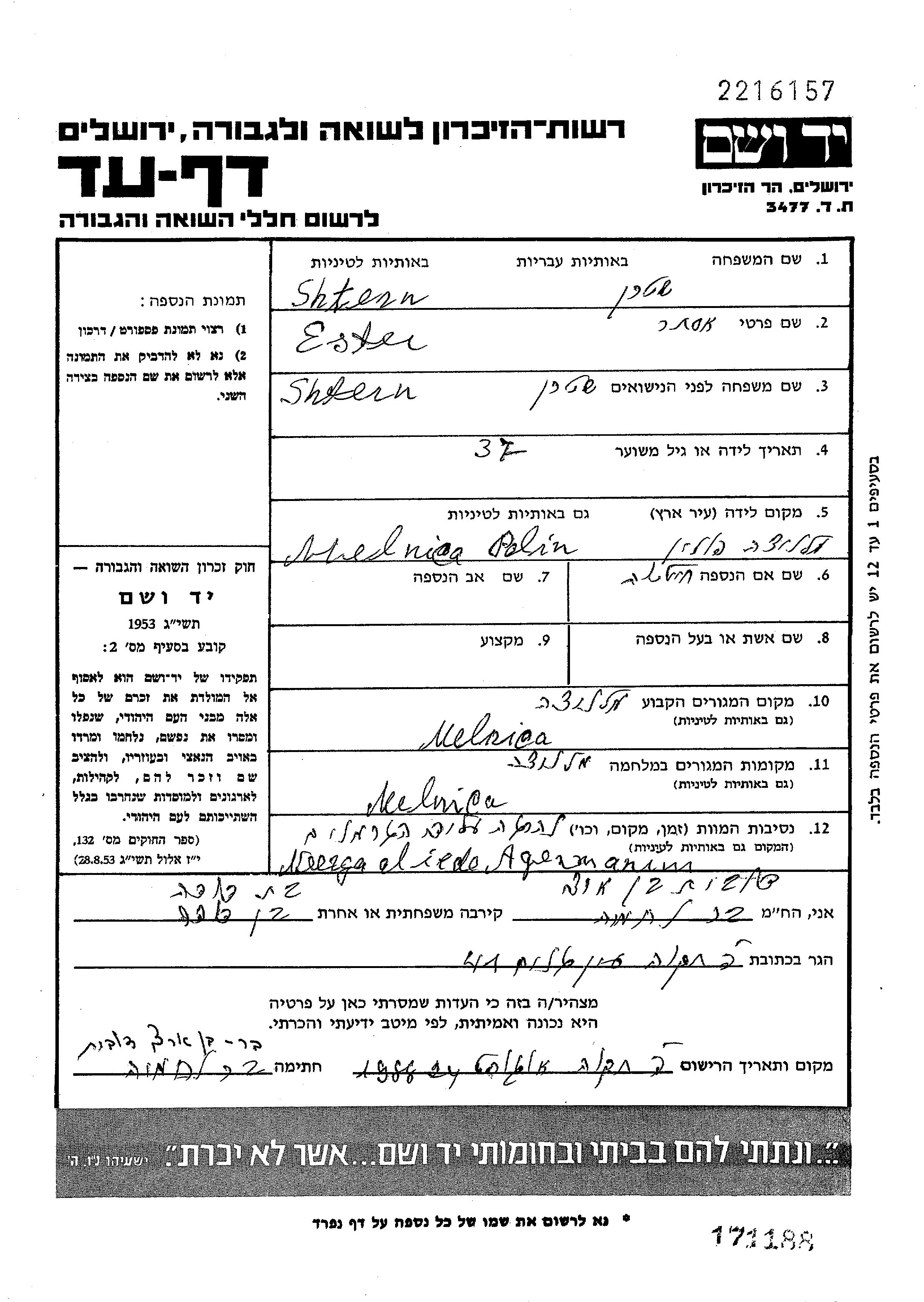 Yad Vashem - Pages of Testimony Names Memorial Collection
