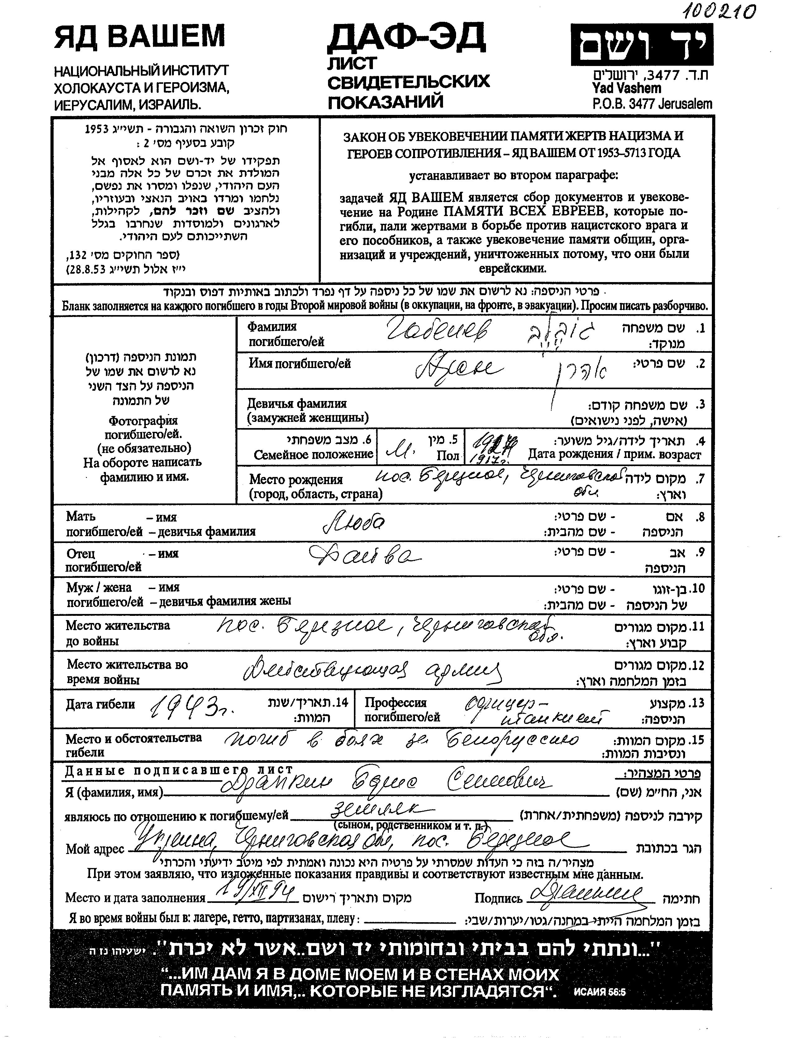 Search by last name of the submitter of the Page of Testimony, including diminutives or nicknames