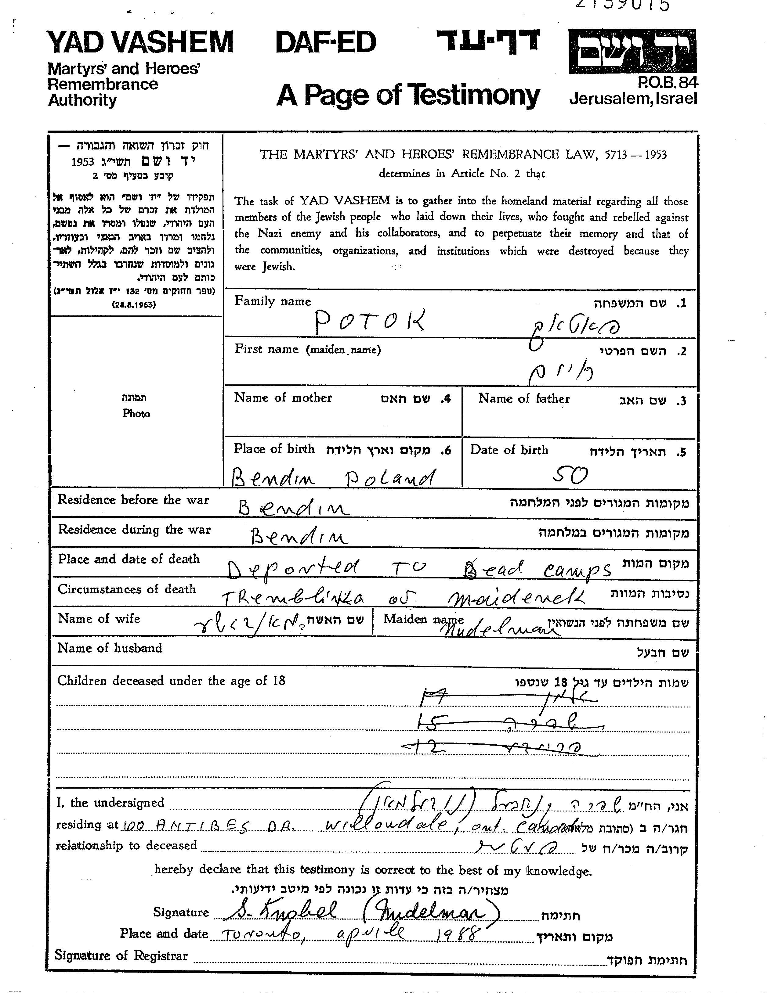 Search by last name of the submitter of the Page of Testimony, including diminutives or nicknames