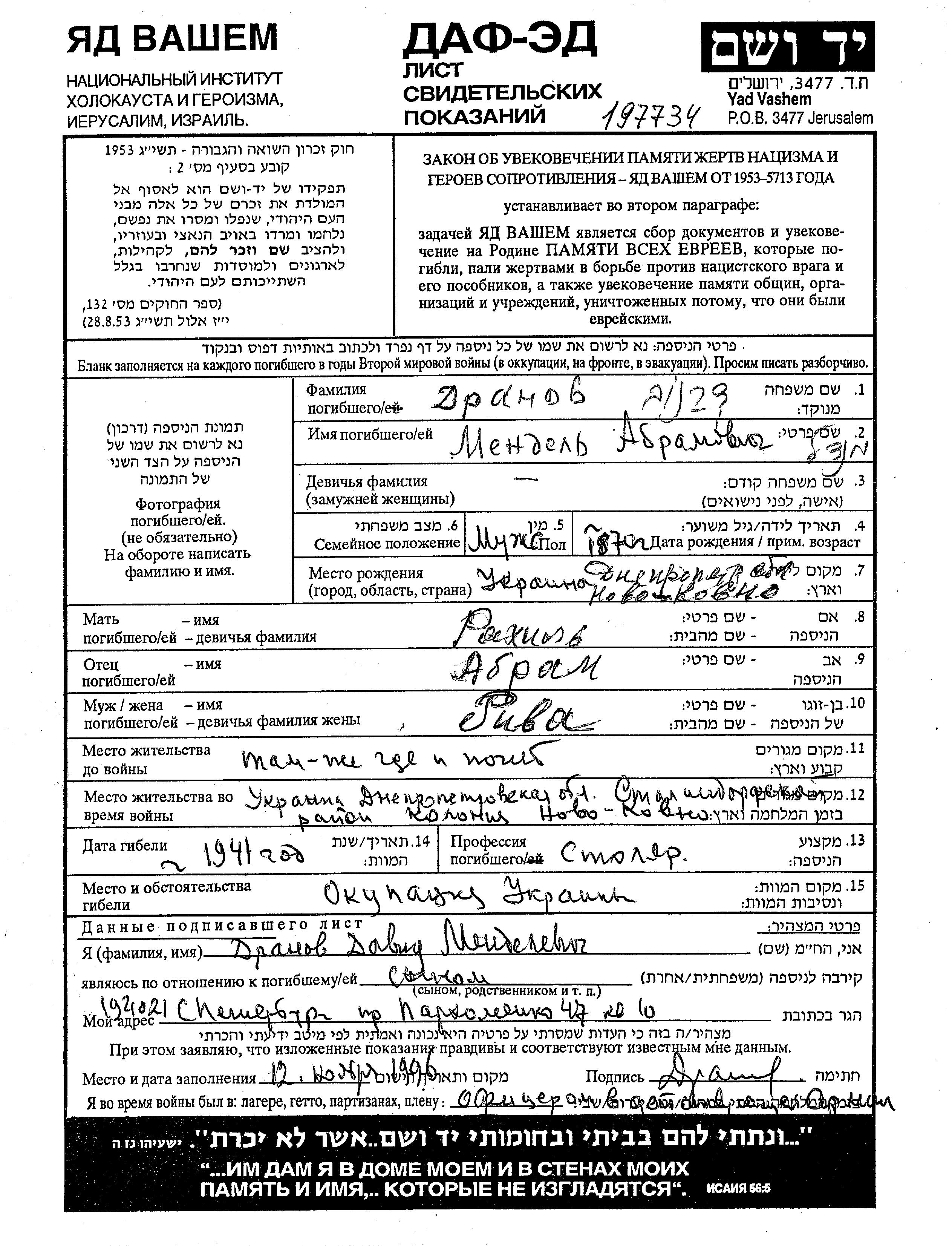 Search by last name of the submitter of the Page of Testimony, including diminutives or nicknames