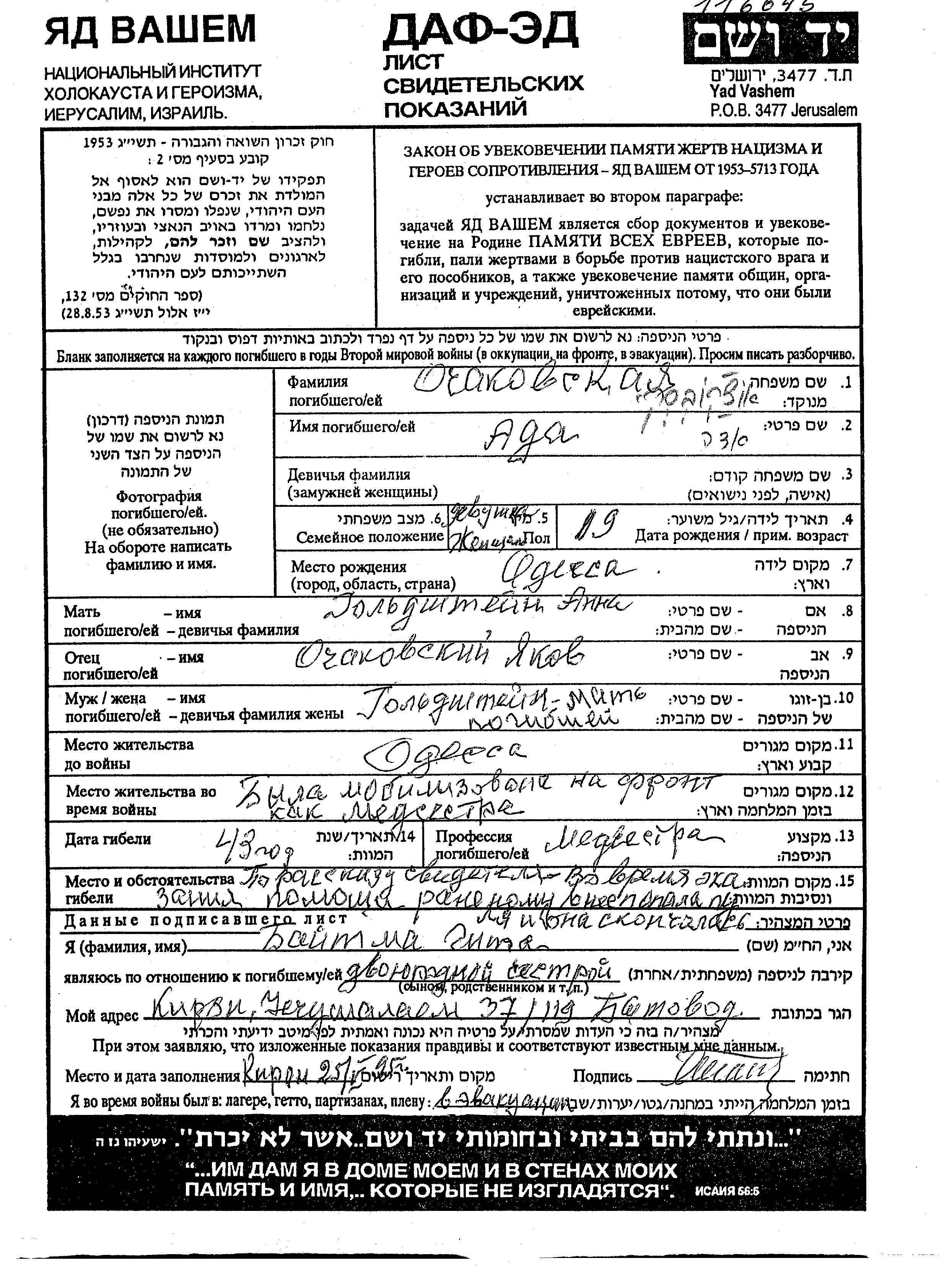 Search by last name of the submitter of the Page of Testimony, including diminutives or nicknames