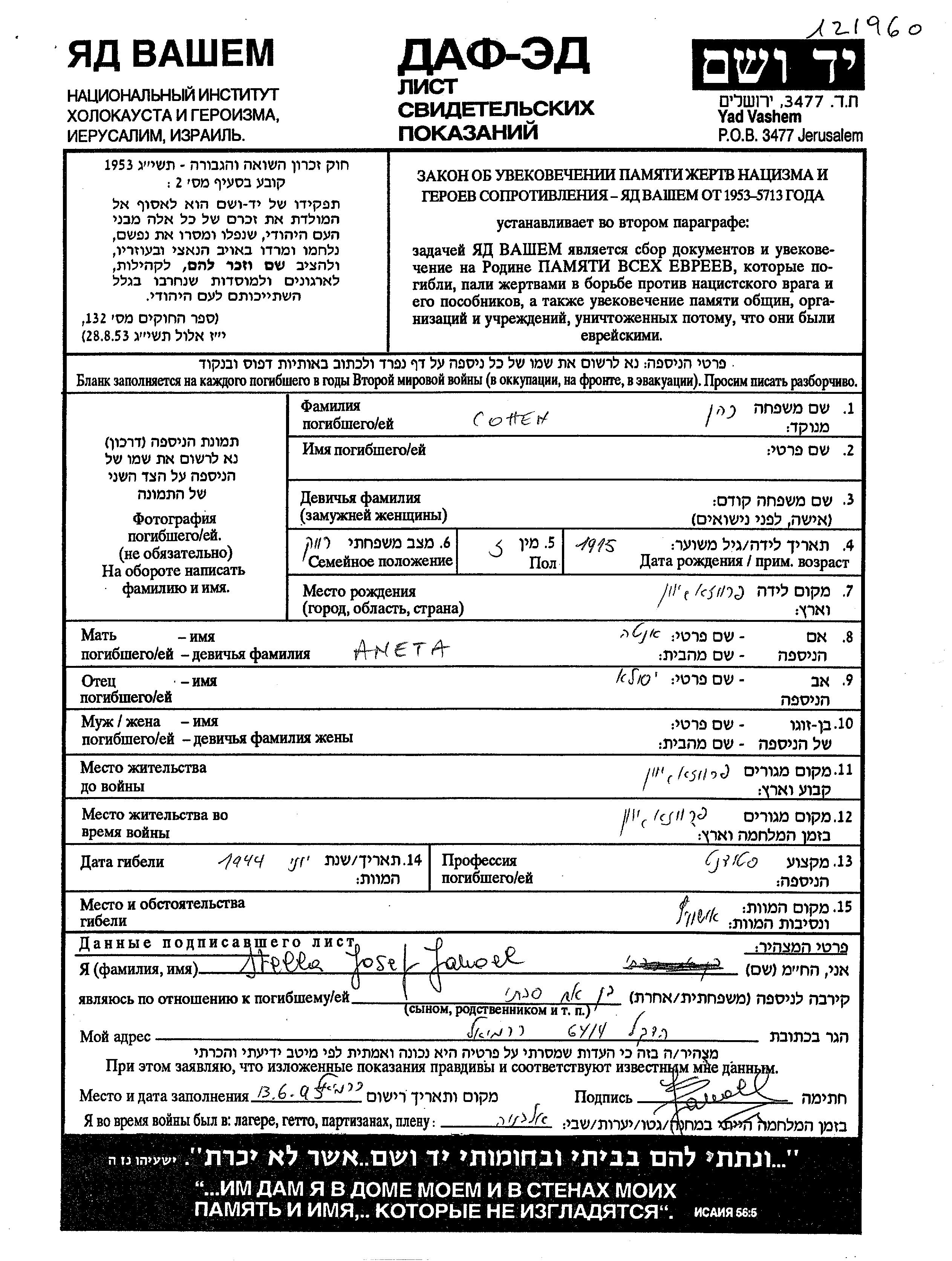 Yad Vashem - Pages of Testimony Names Memorial Collection