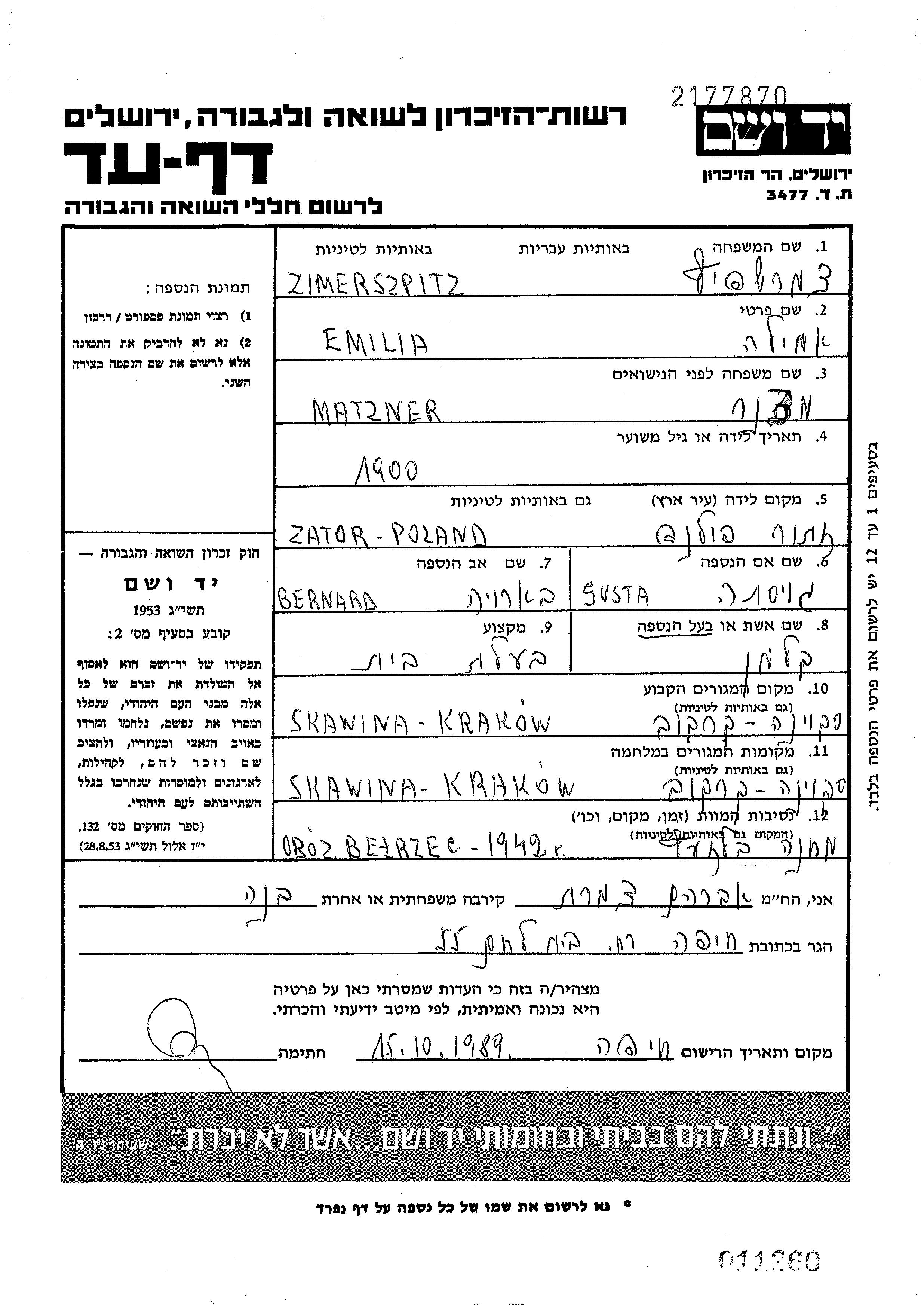 Zimerszpitz Emilia 1900 Skawina, Poland Page of Testimony