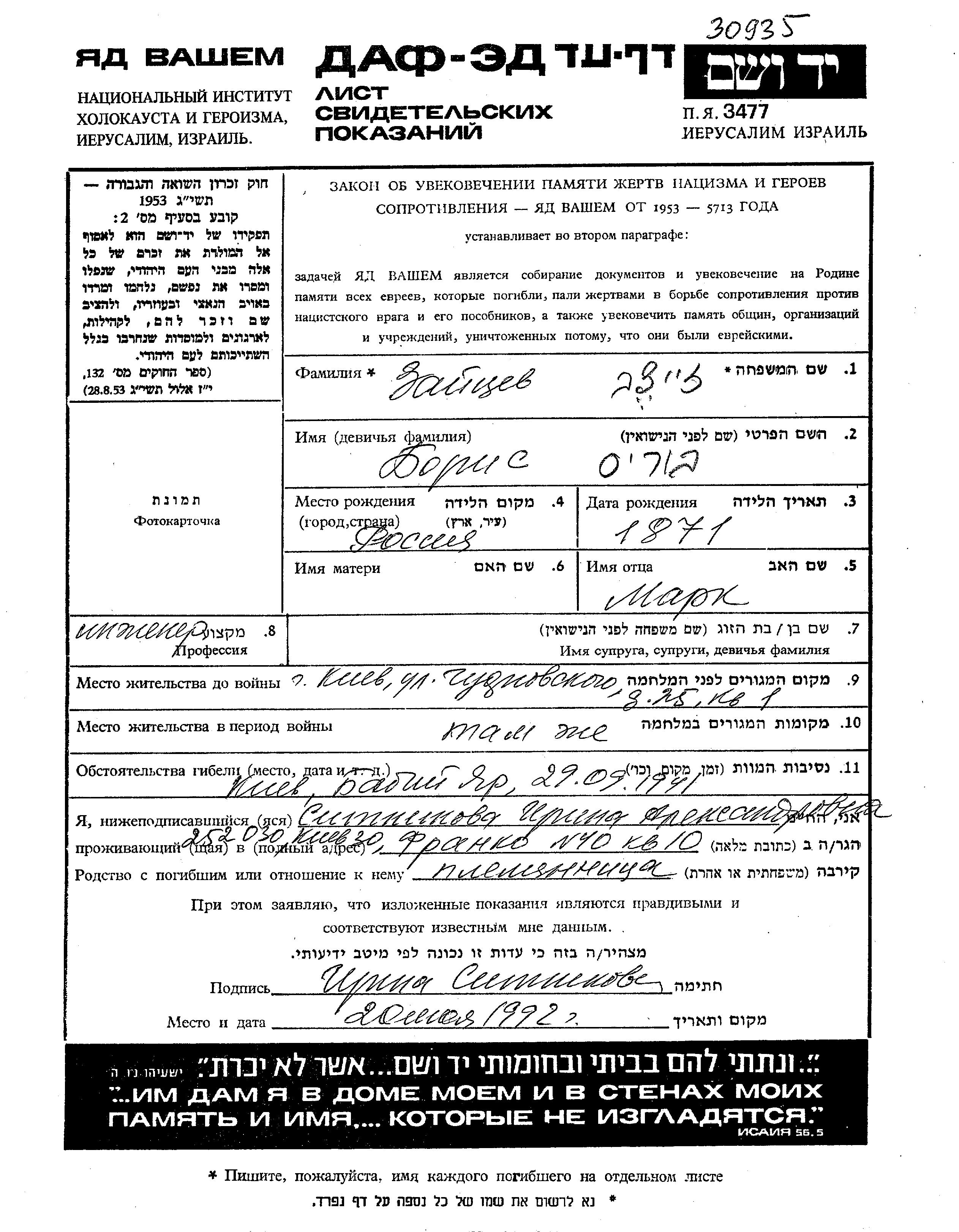 Zaitzev Boris 1871 Kiyev, Ukraine (USSR) Page of Testimony