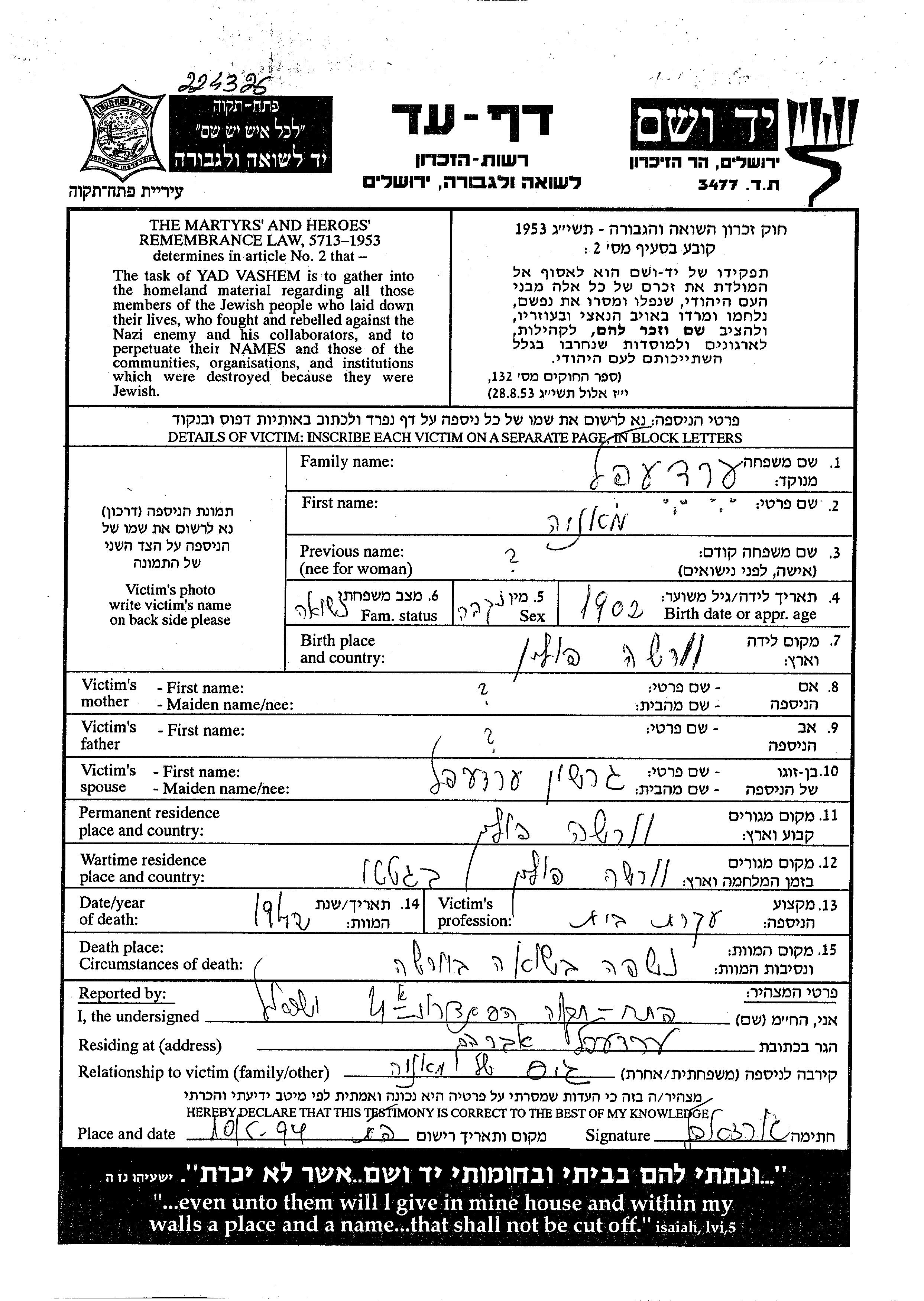 Yad Vashem - Pages of Testimony Names Memorial Collection