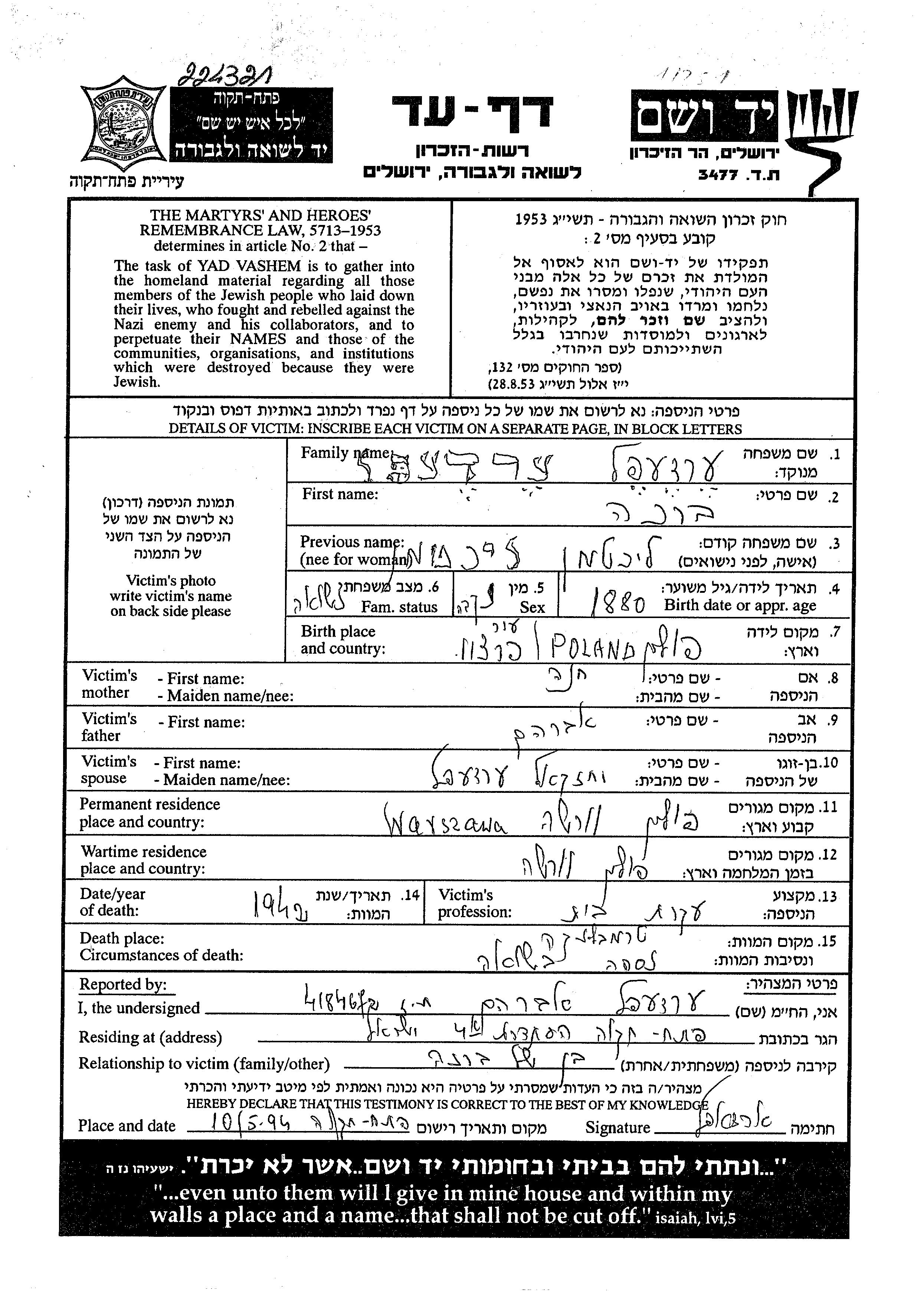 Yad Vashem - Pages of Testimony Names Memorial Collection