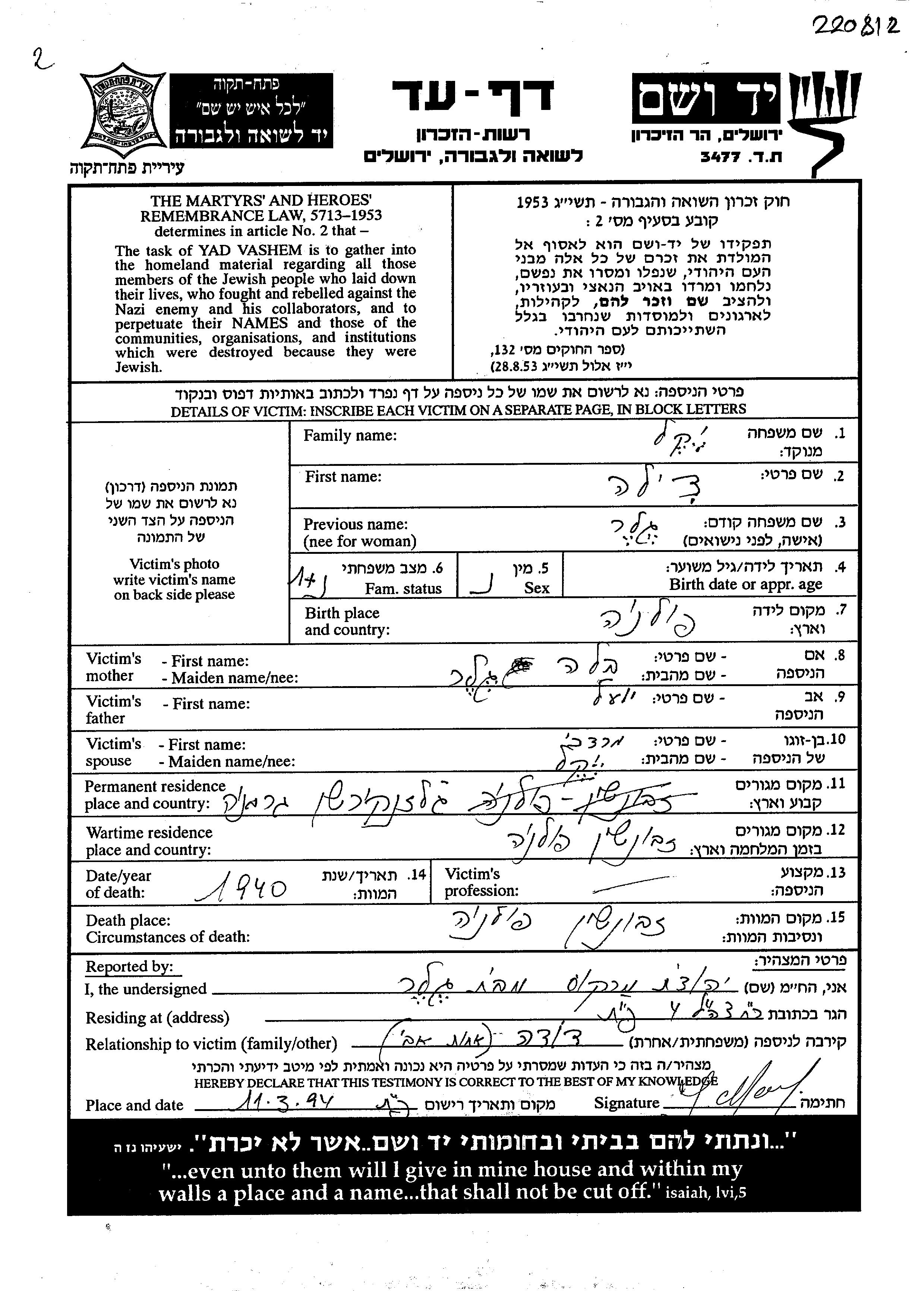 Yad Vashem - Pages of Testimony Names Memorial Collection