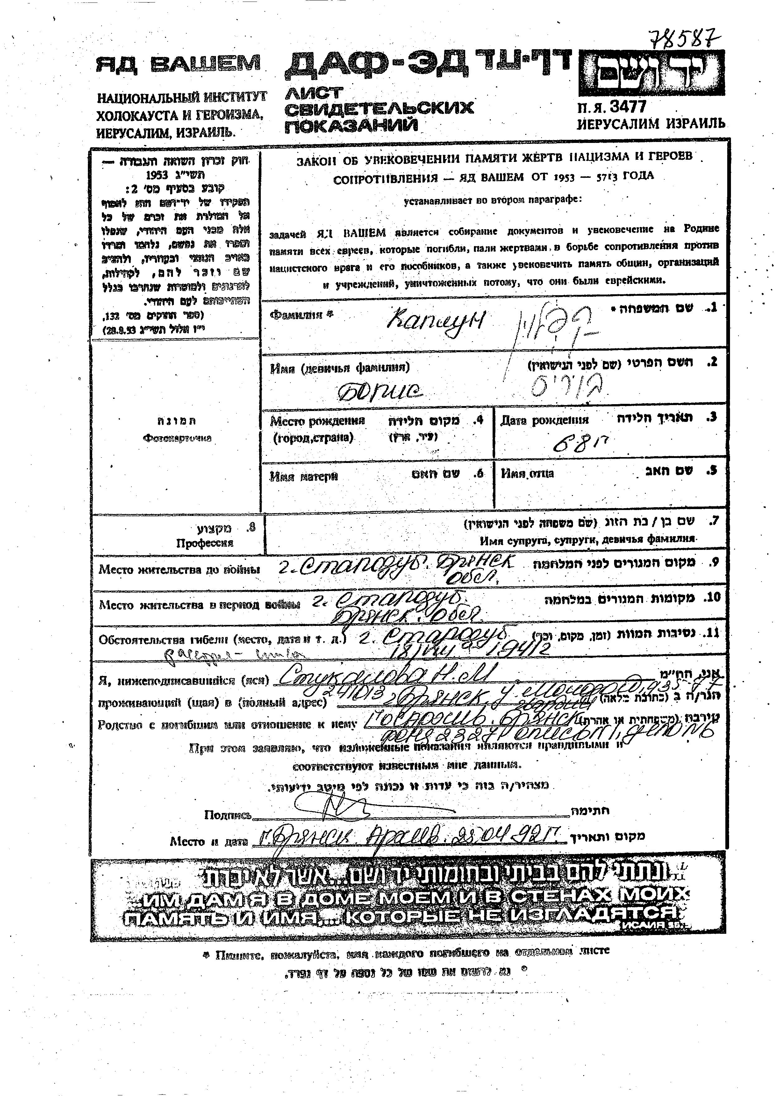 Boris Kaplun was born, 1873. Prior to WWII he lived in Starodub, Russia (USSR). During the war he was in Starodub, Russia (USSR). Boris was murdered in the Shoah. Place of death: Starodub, Russia (USSR), 18/08/1941.