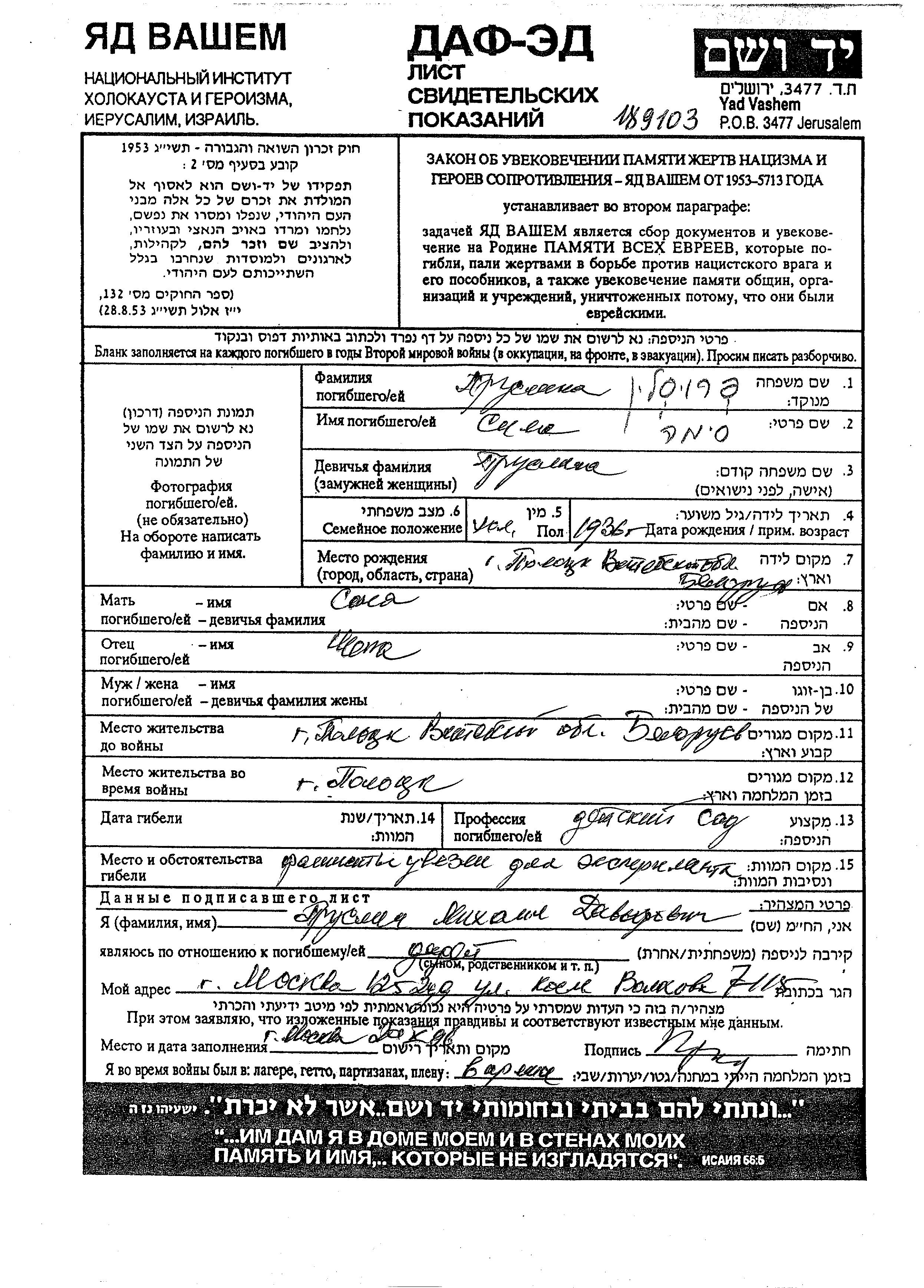 Yad Vashem - Pages of Testimony Names Memorial Collection