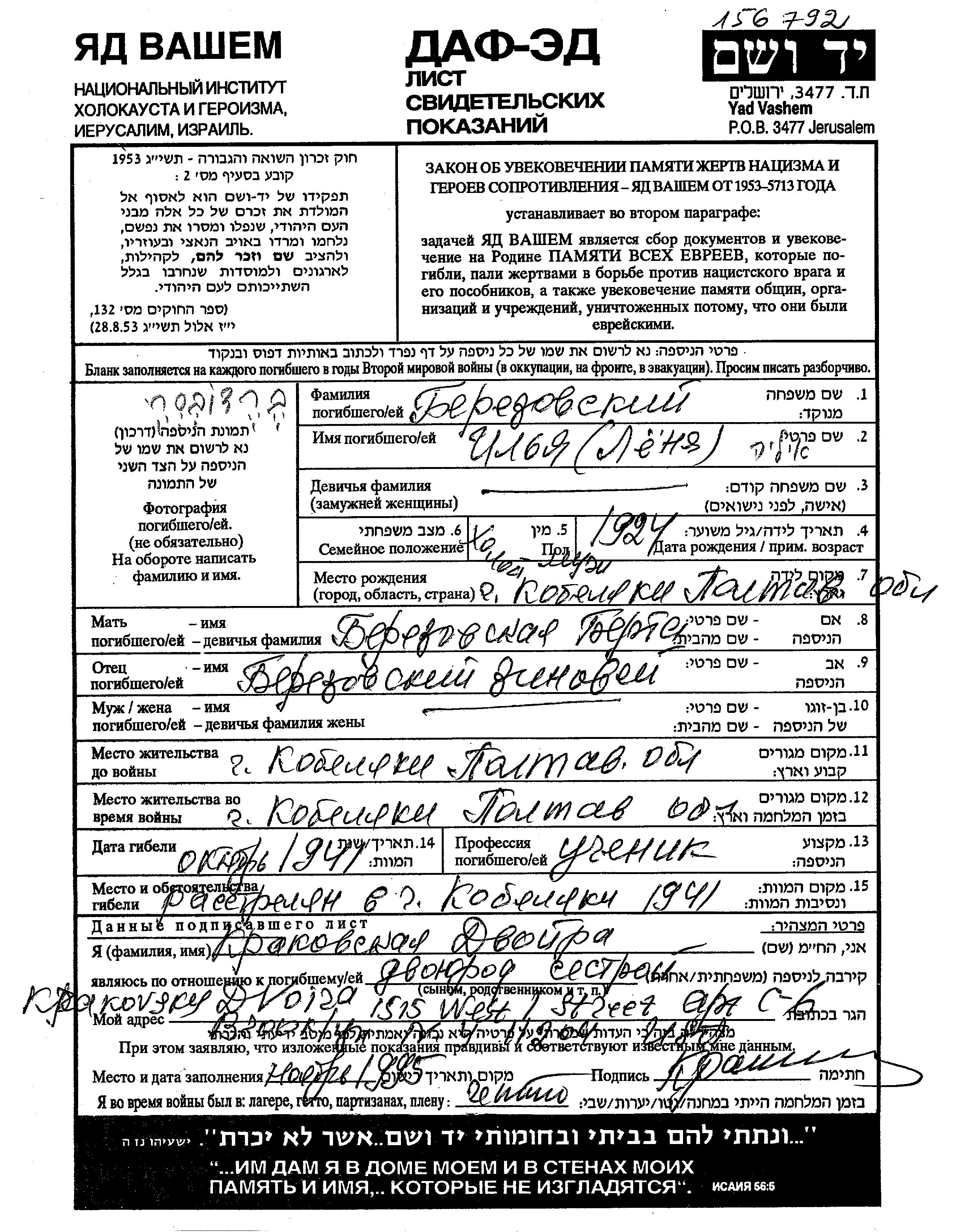 Yad Vashem - Pages of Testimony Names Memorial Collection