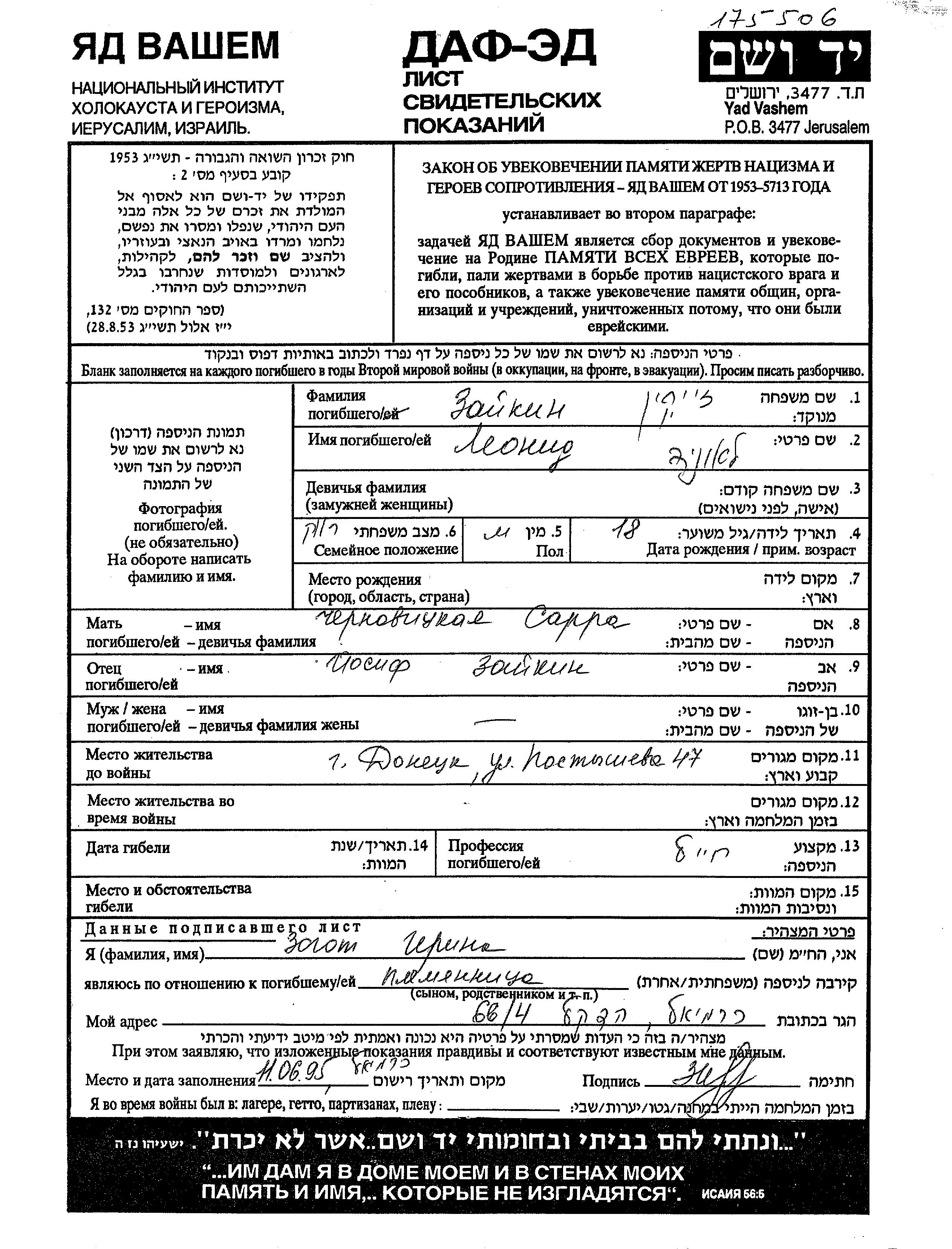 Search by last name of the submitter of the Page of Testimony, including diminutives or nicknames