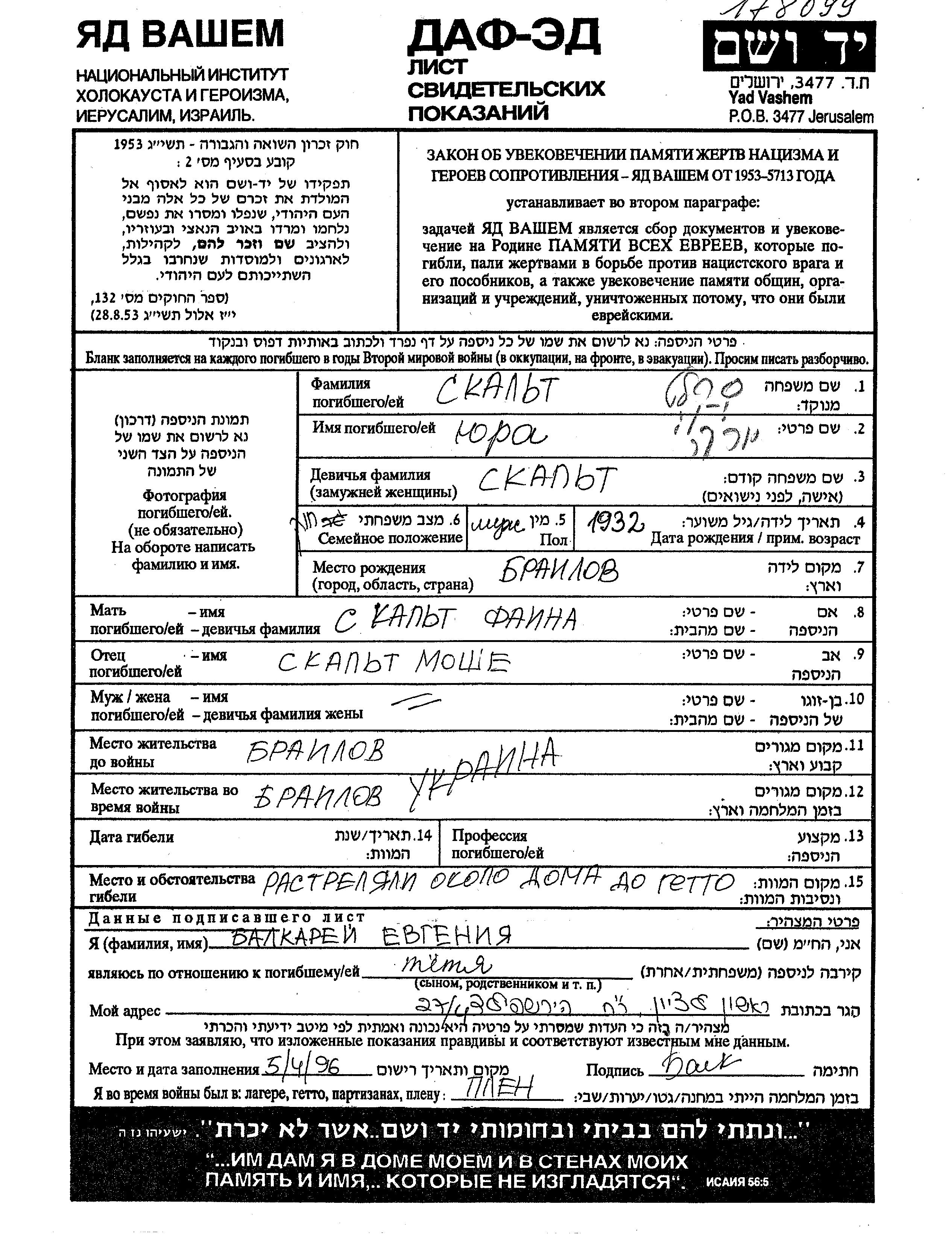 Skalt Yura 1932 Brailov, Ukraine (USSR) Page of Testimony