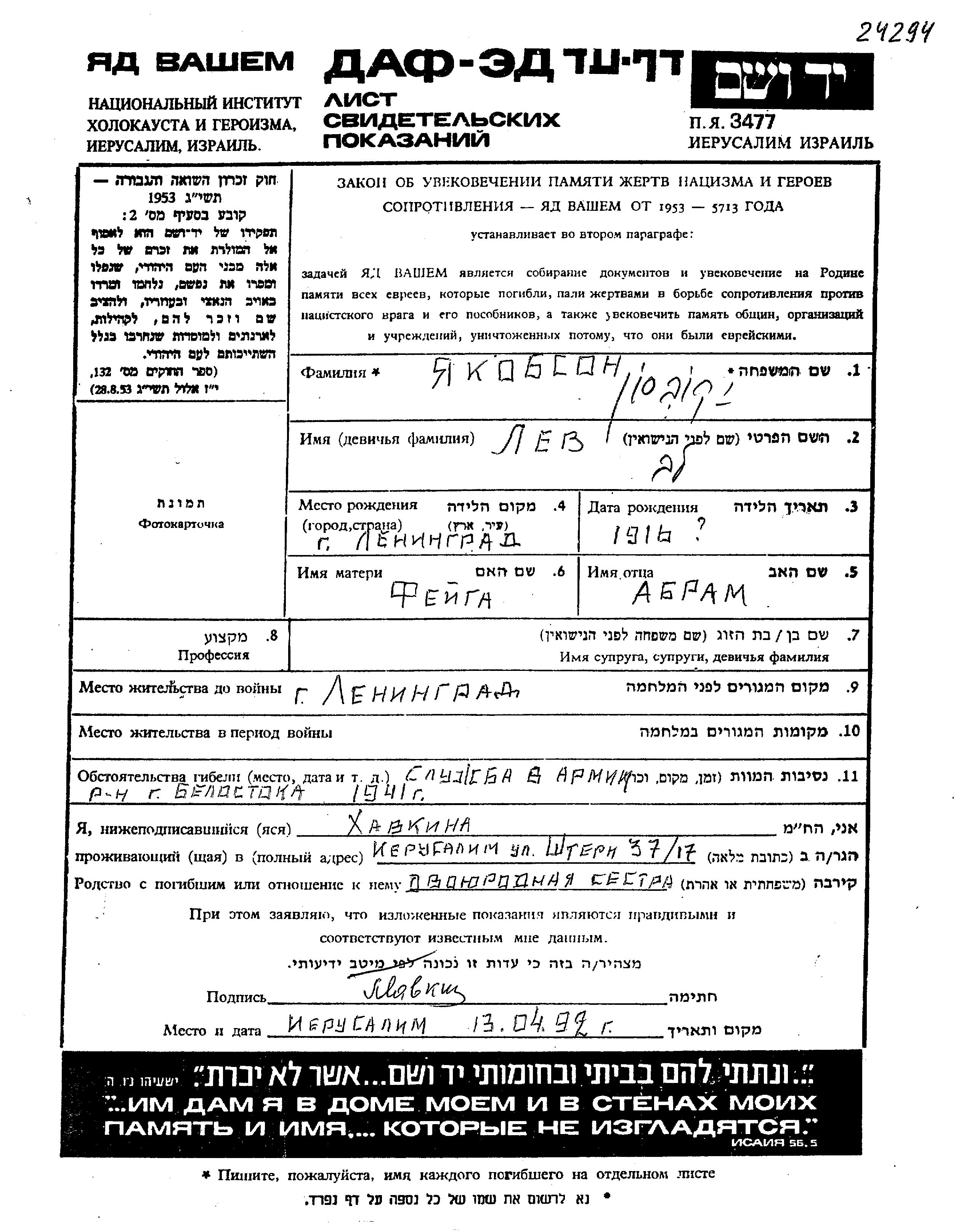 Search by last name of the submitter of the Page of Testimony, including diminutives or nicknames