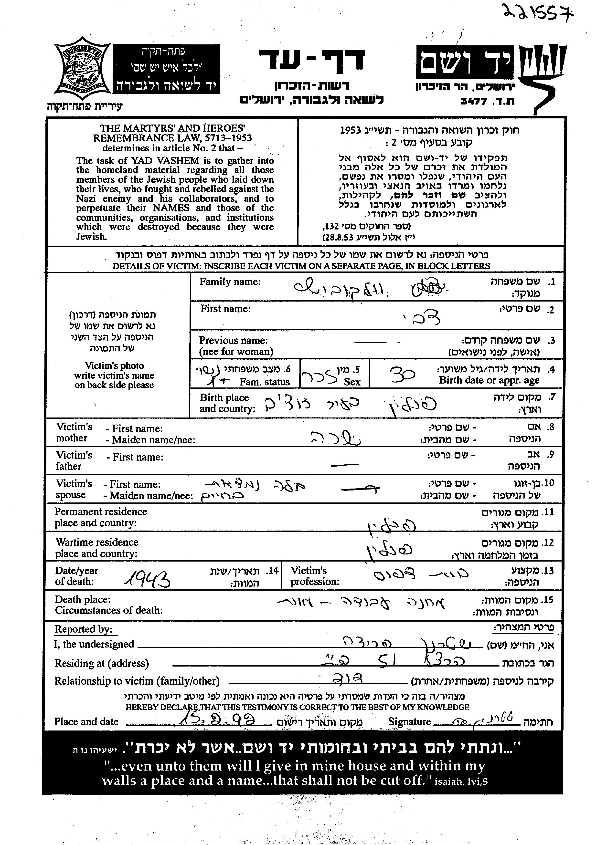 Yad Vashem - Pages of Testimony Names Memorial Collection