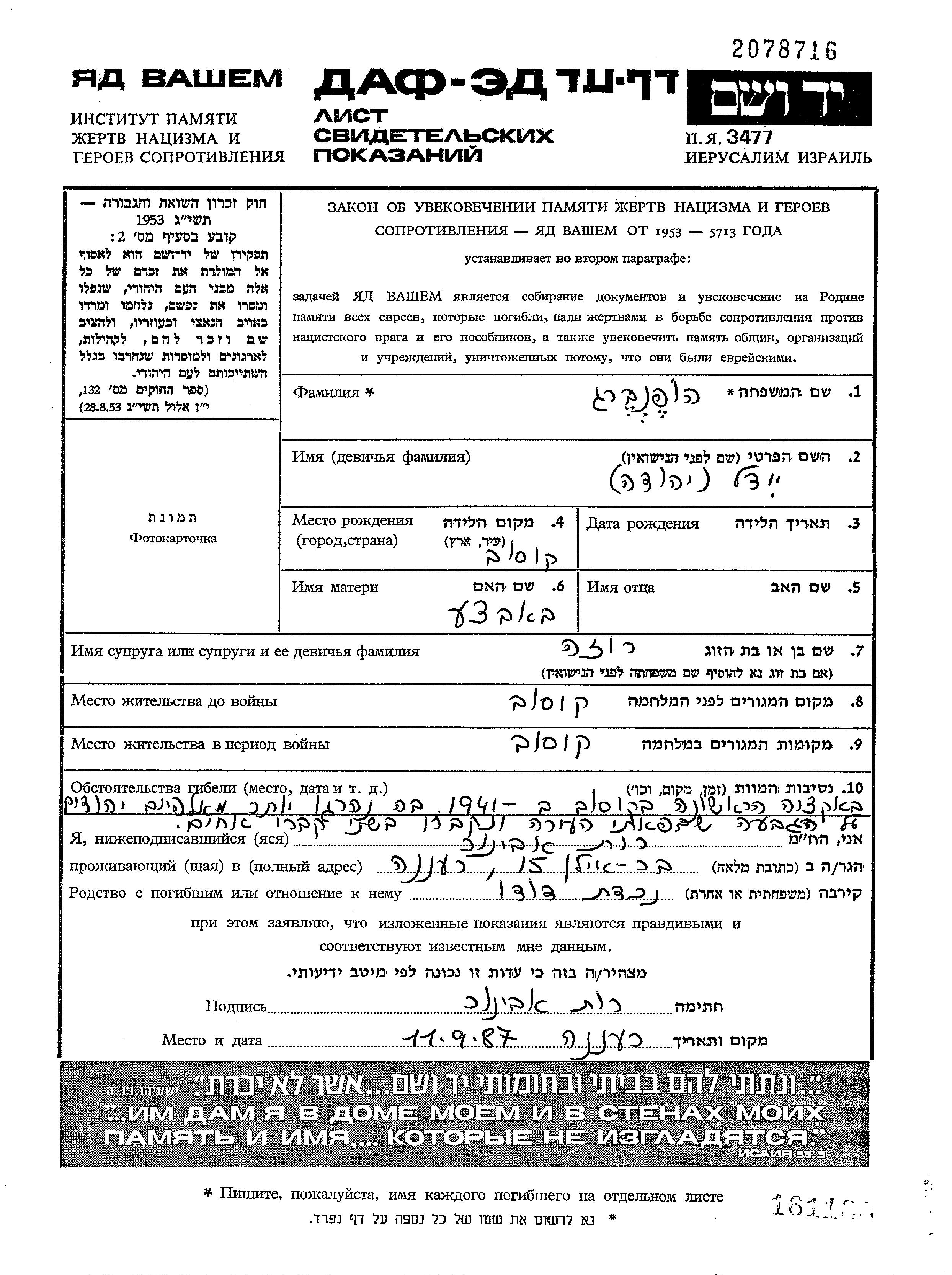 Yad Vashem - Pages of Testimony Names Memorial Collection