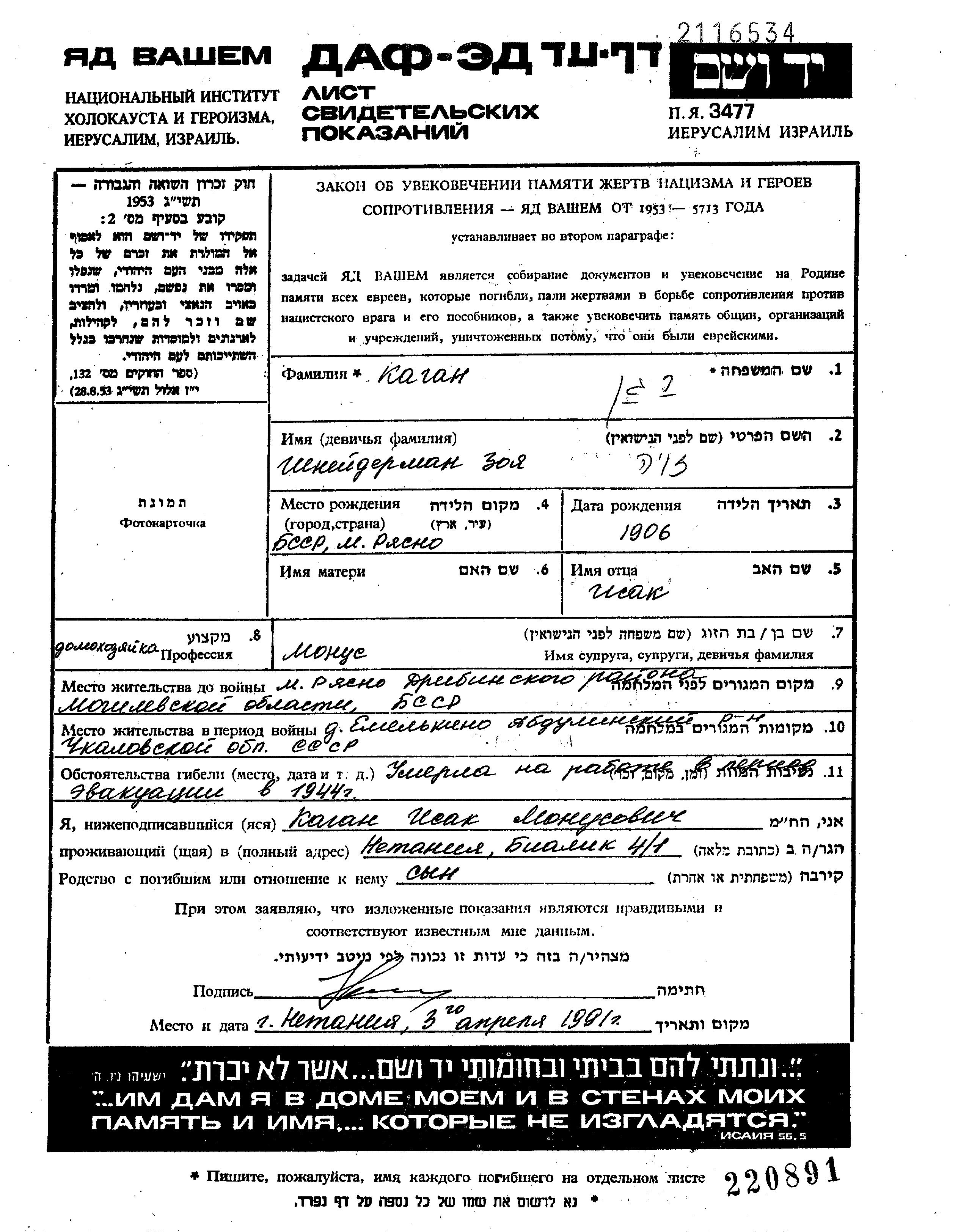 Search by last name of the submitter of the Page of Testimony, including diminutives or nicknames