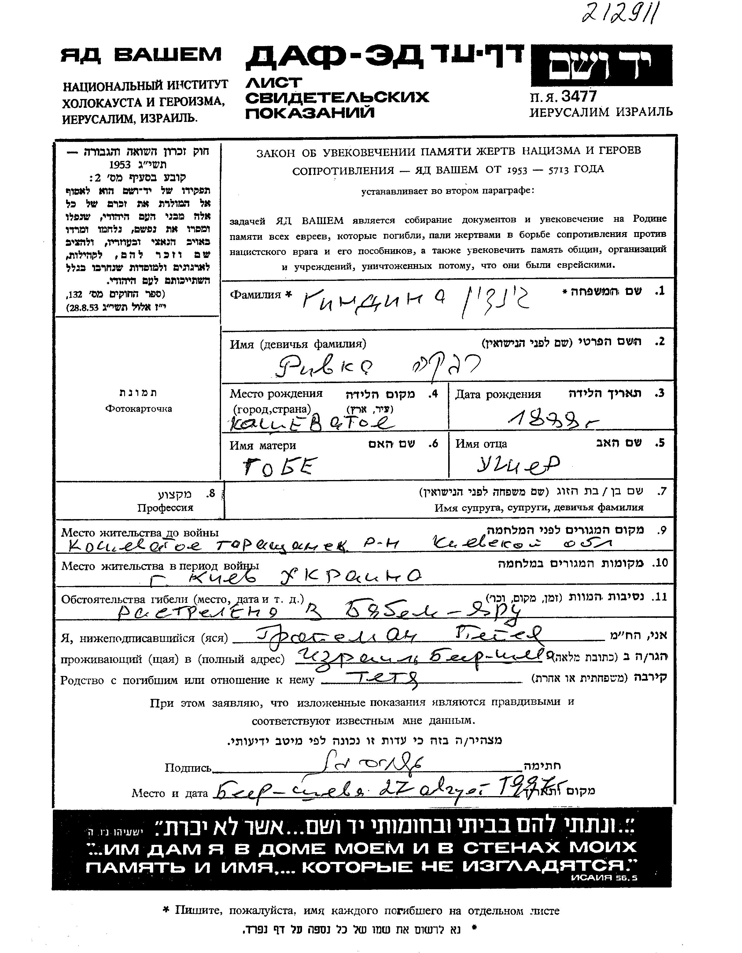 Search by last name of the submitter of the Page of Testimony, including diminutives or nicknames