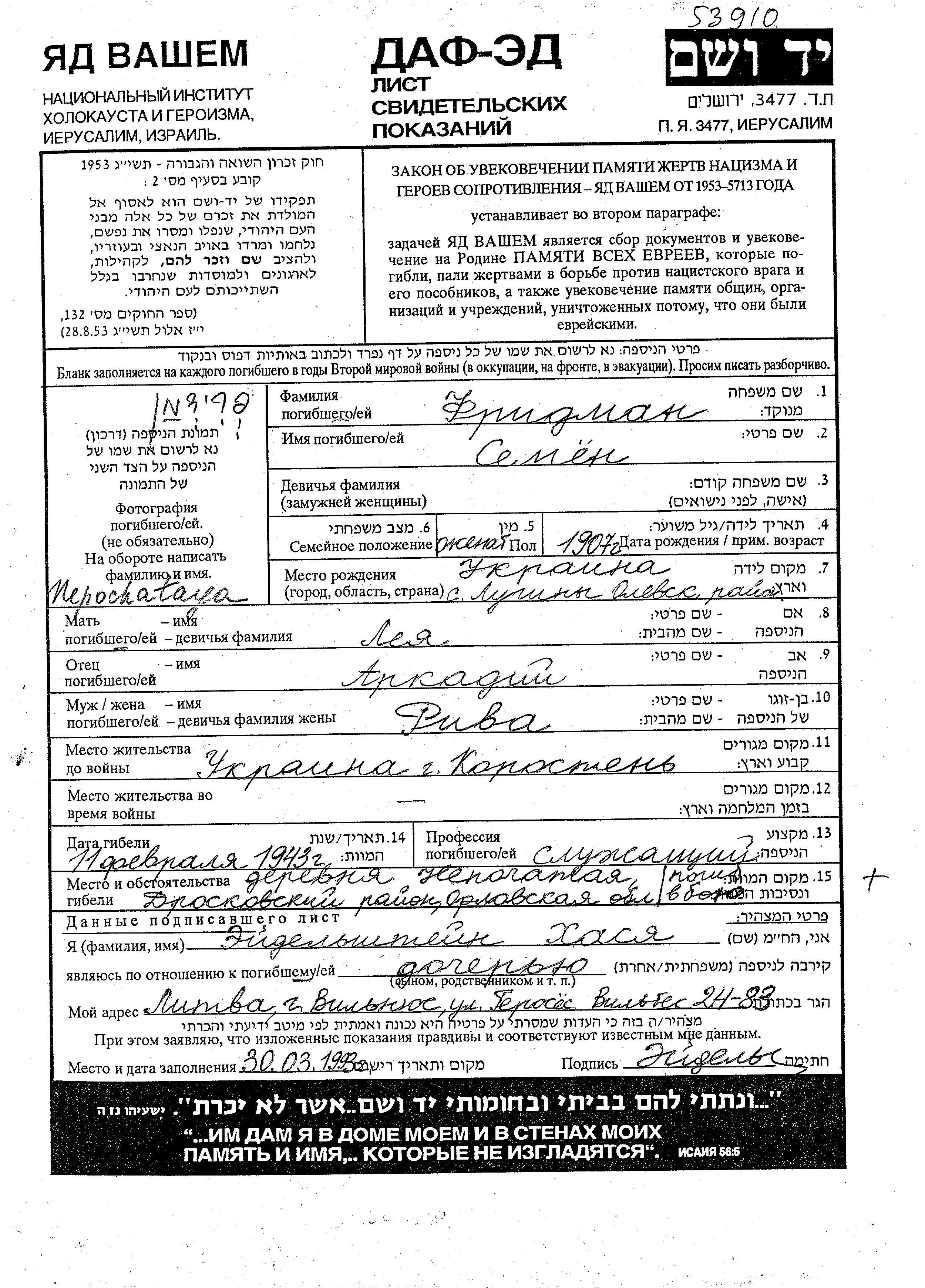 Search by last name of the submitter of the Page of Testimony, including diminutives or nicknames