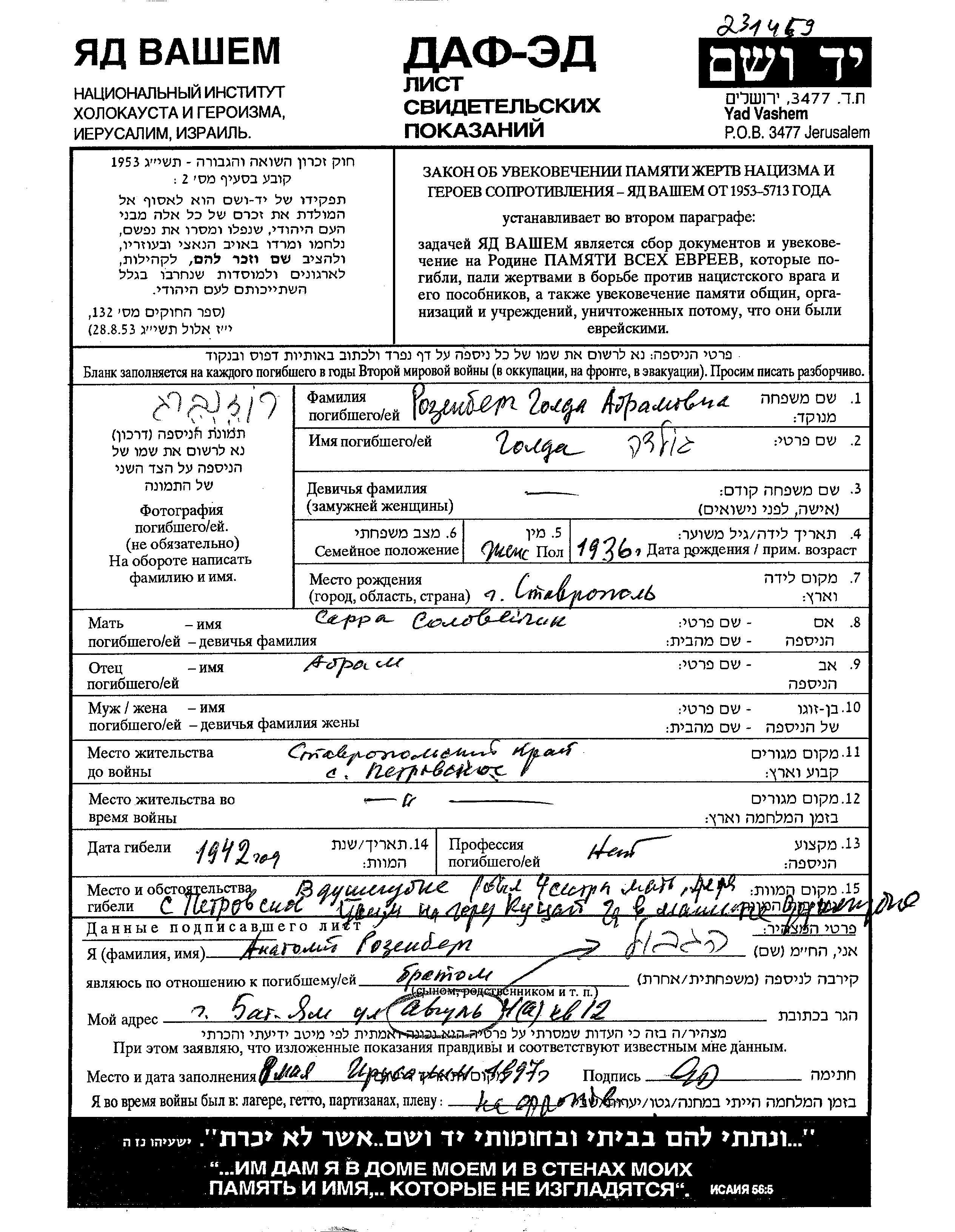 Rozenberg Golda 1936 Petrovskoye, Russia (USSR) Page of Testimony