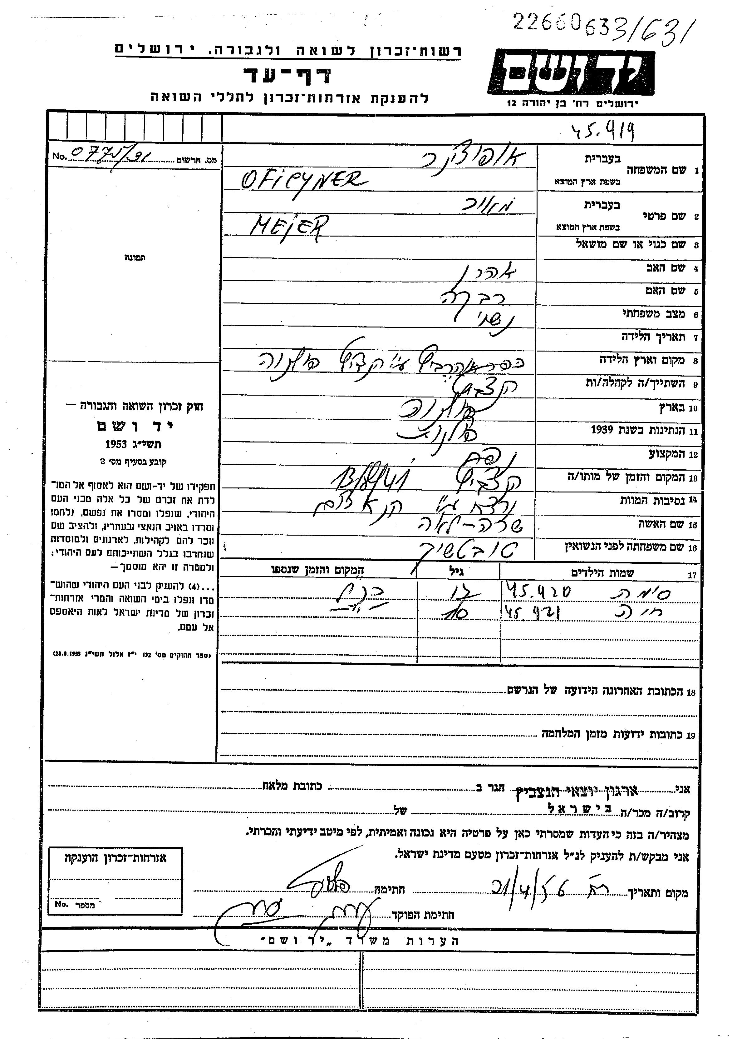 Oficyner Mejer Hancewicze, Poland Page of Testimony