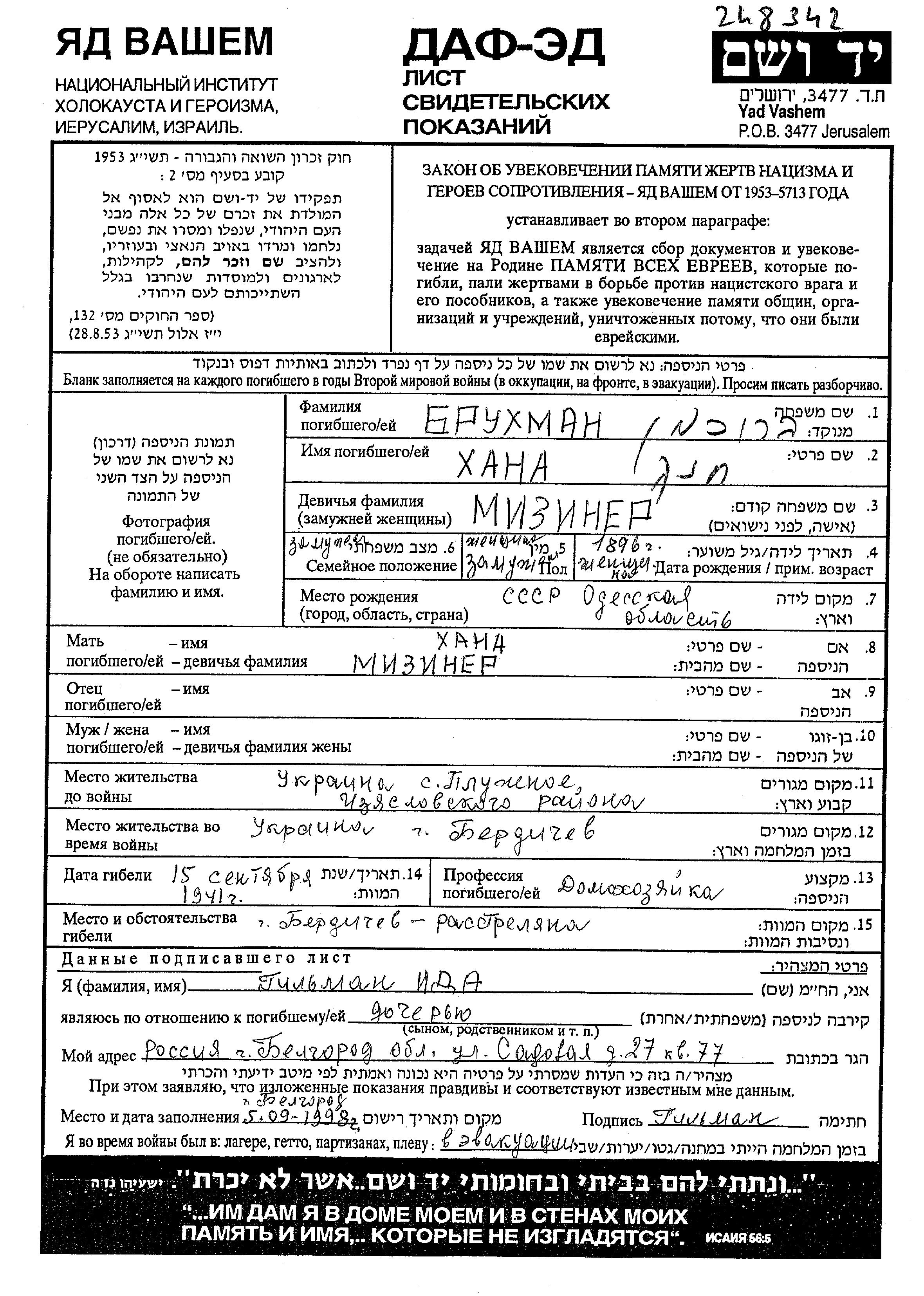 Yad Vashem - Pages of Testimony Names Memorial Collection