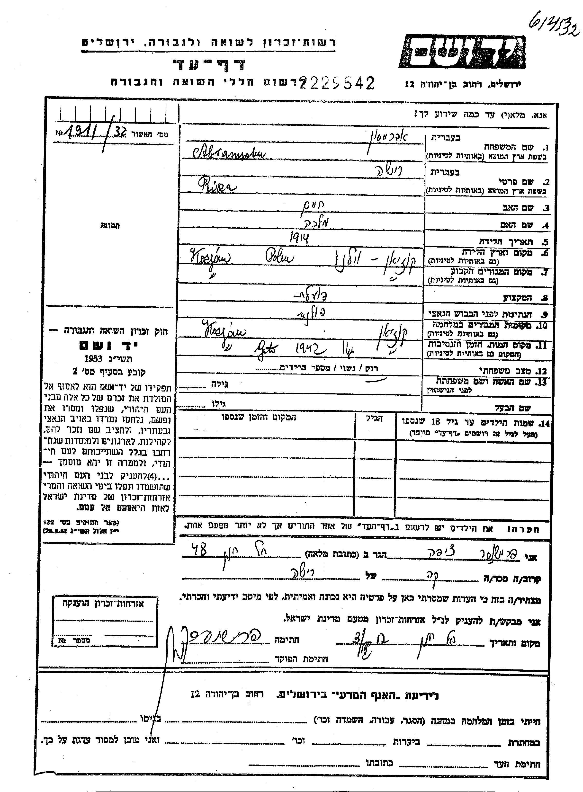 Yad Vashem - Pages of Testimony Names Memorial Collection