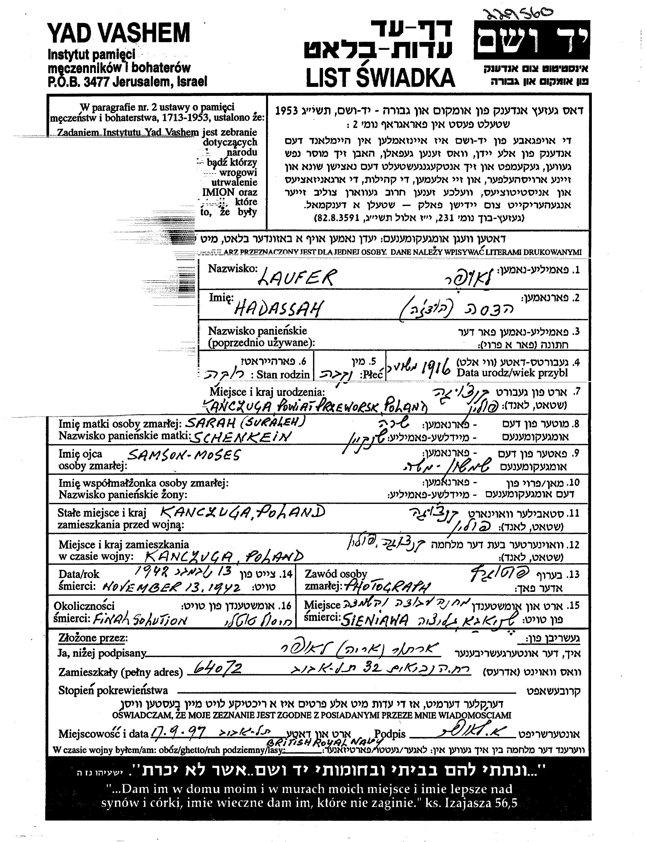 Search by last name of the submitter of the Page of Testimony, including diminutives or nicknames