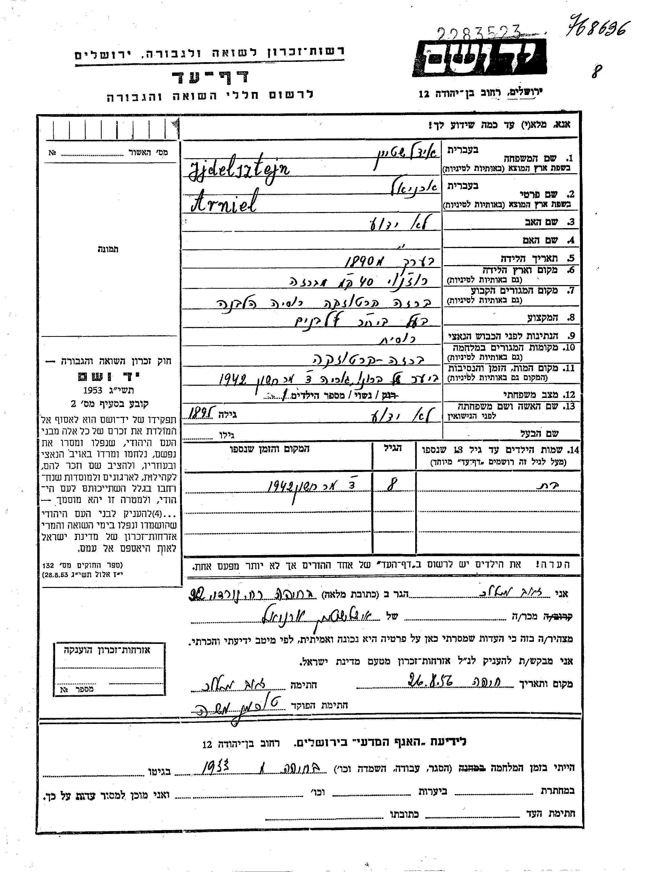 Ijdelsztejn Arniel 1890 Bereza Kartuska, Poland Page of Testimony