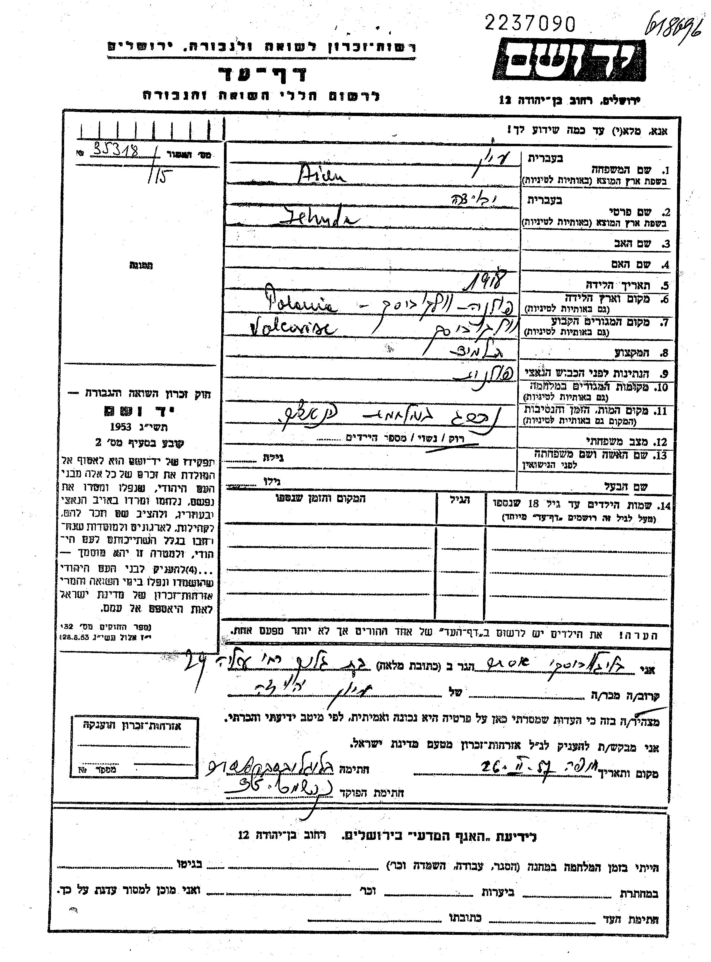 Search by name of Prewar permanent residence, Town, Village, District, Region or Country.