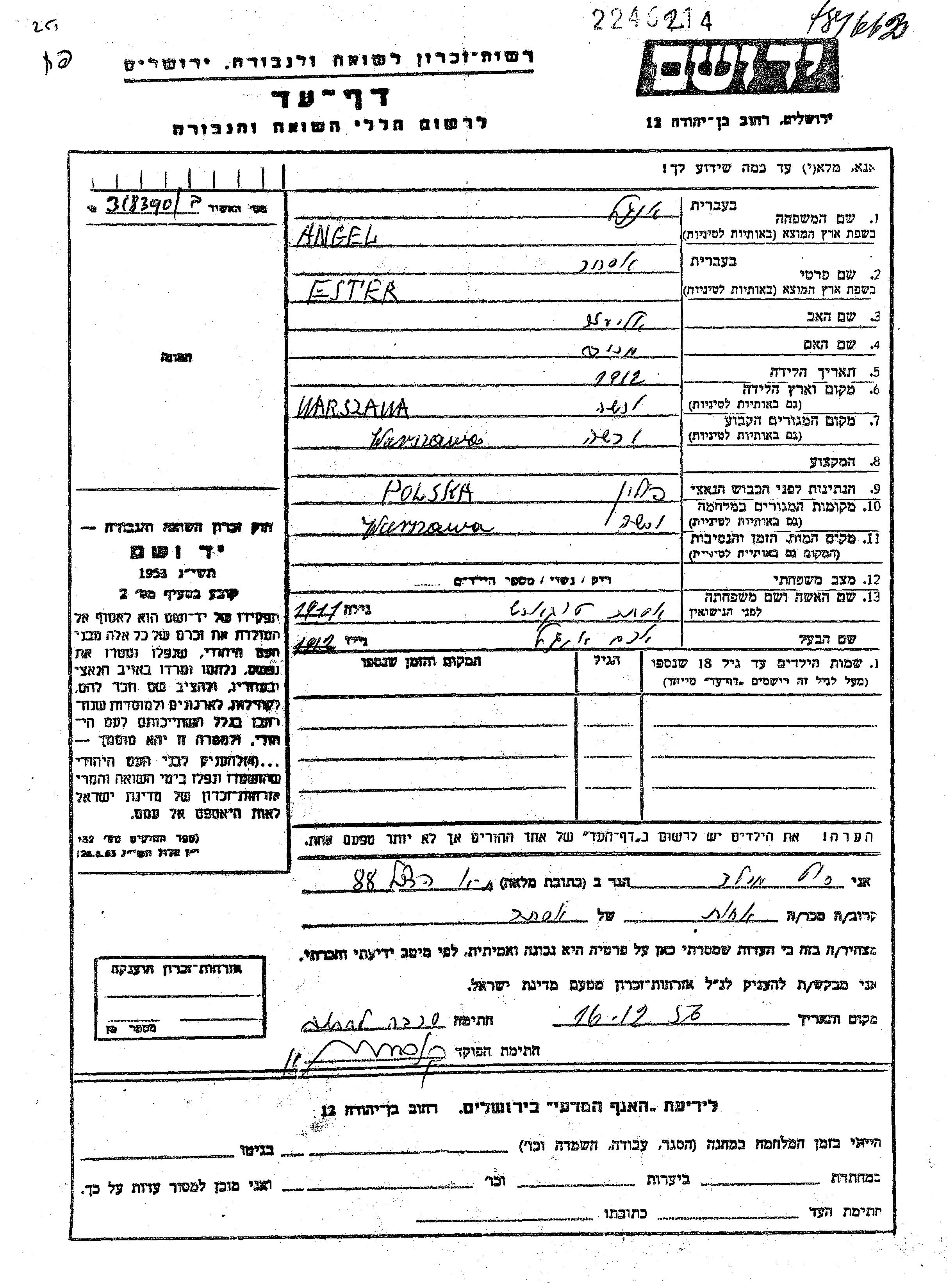 Angel Ester 1912 Warszawa, Poland Page of Testimony