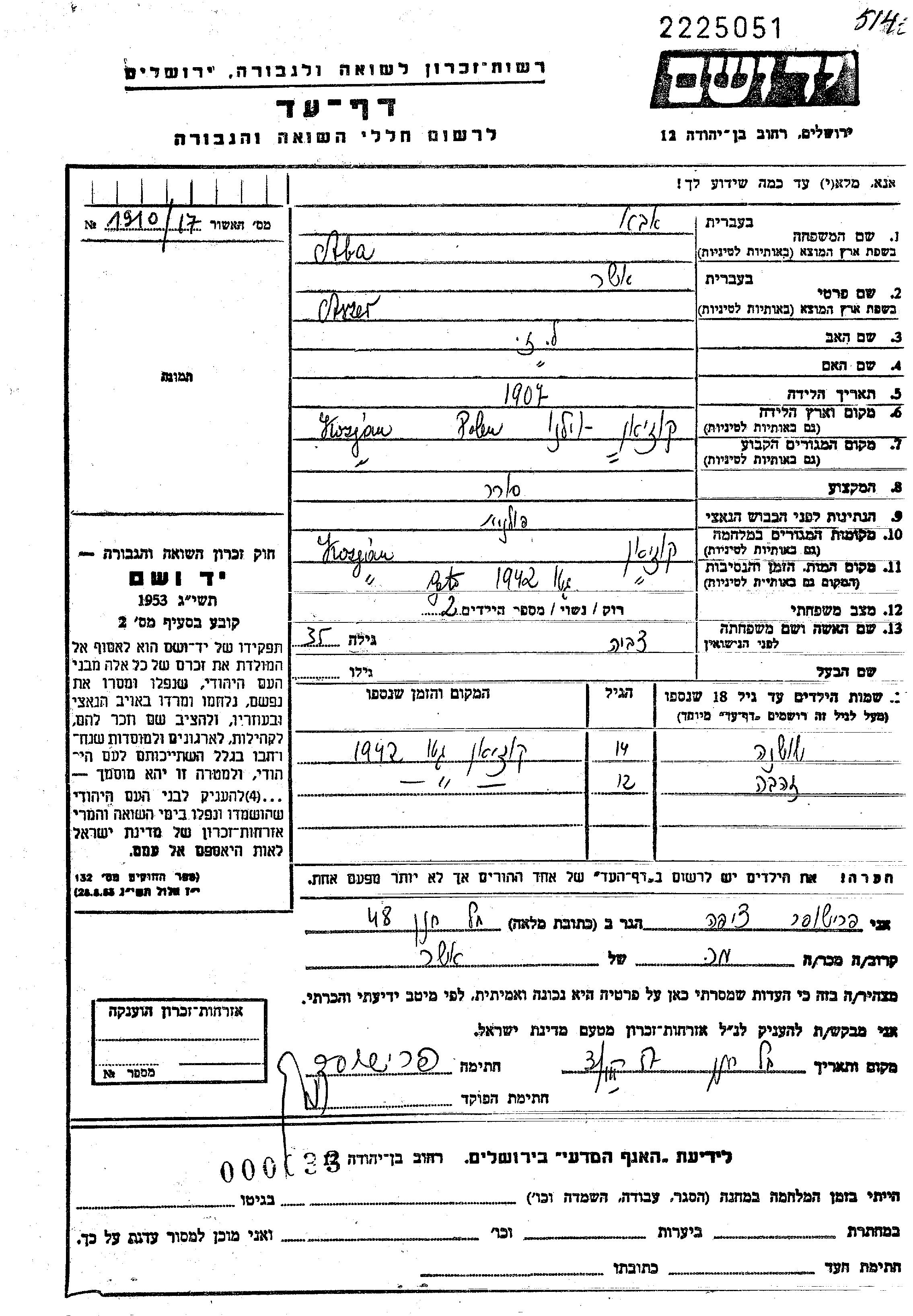 Yad Vashem - Pages of Testimony Names Memorial Collection