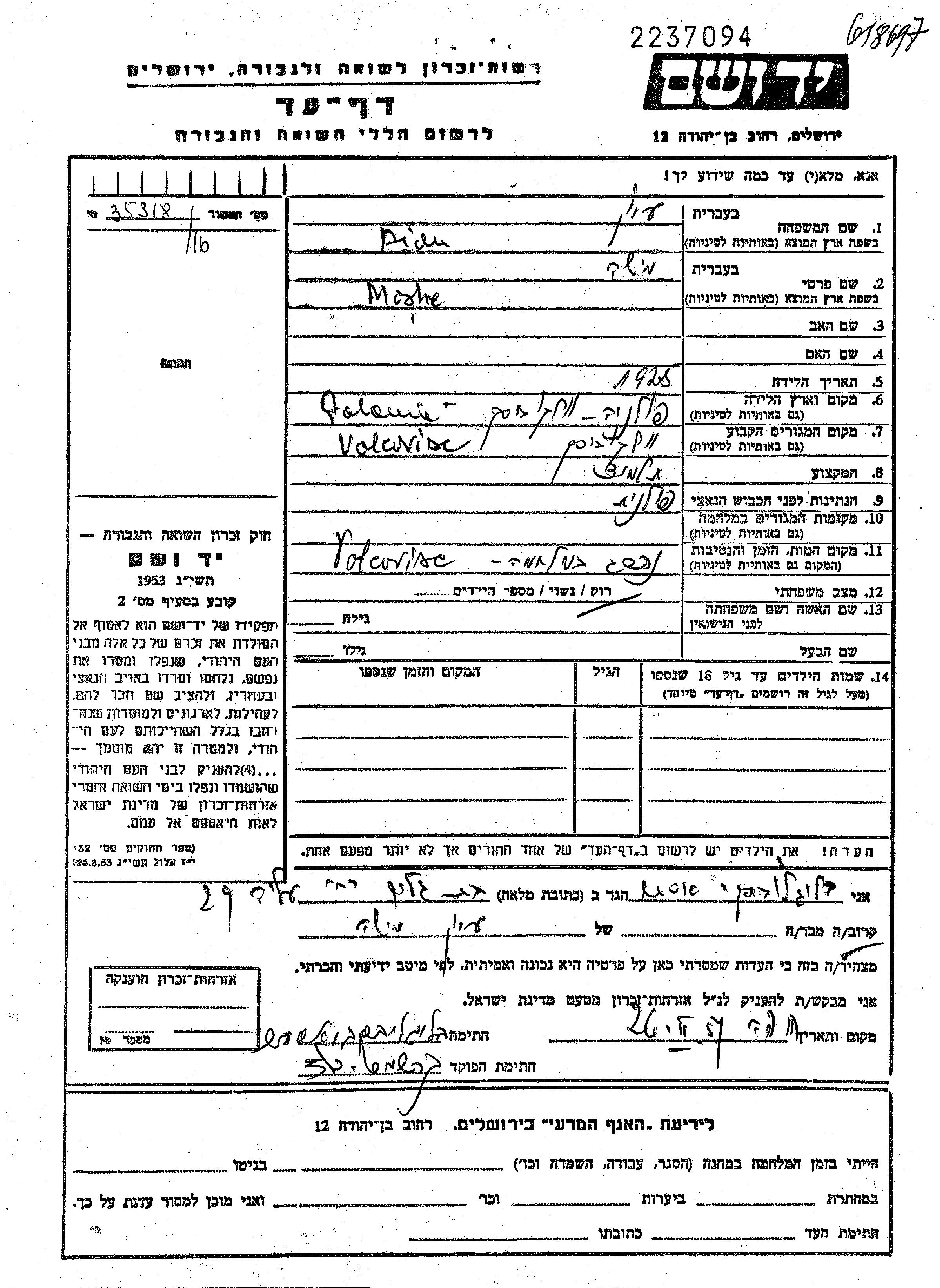 Aion Ajun Moshe 1925 Wolkowysk, Poland Page of Testimony