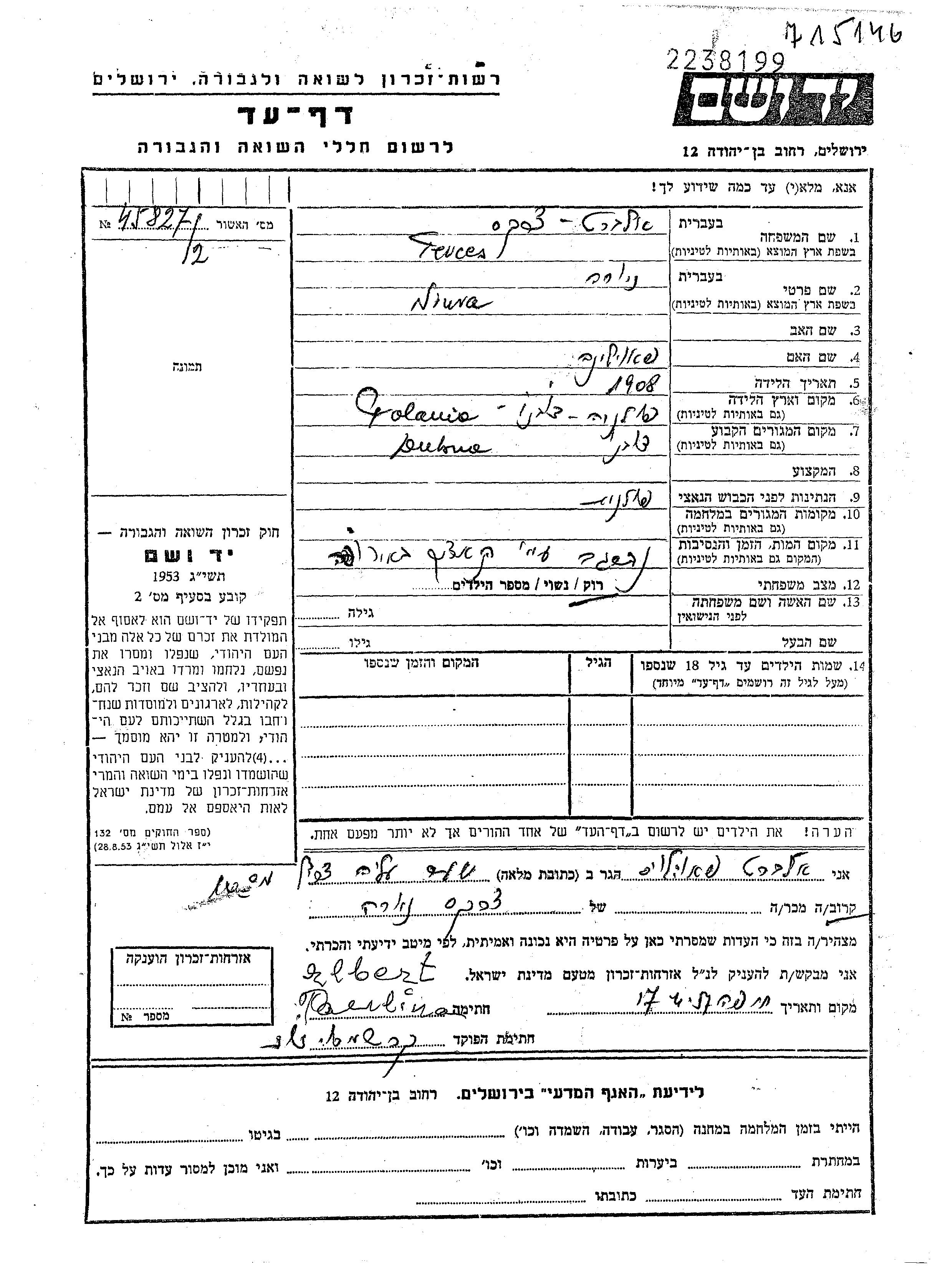 Yad Vashem - Pages of Testimony Names Memorial Collection