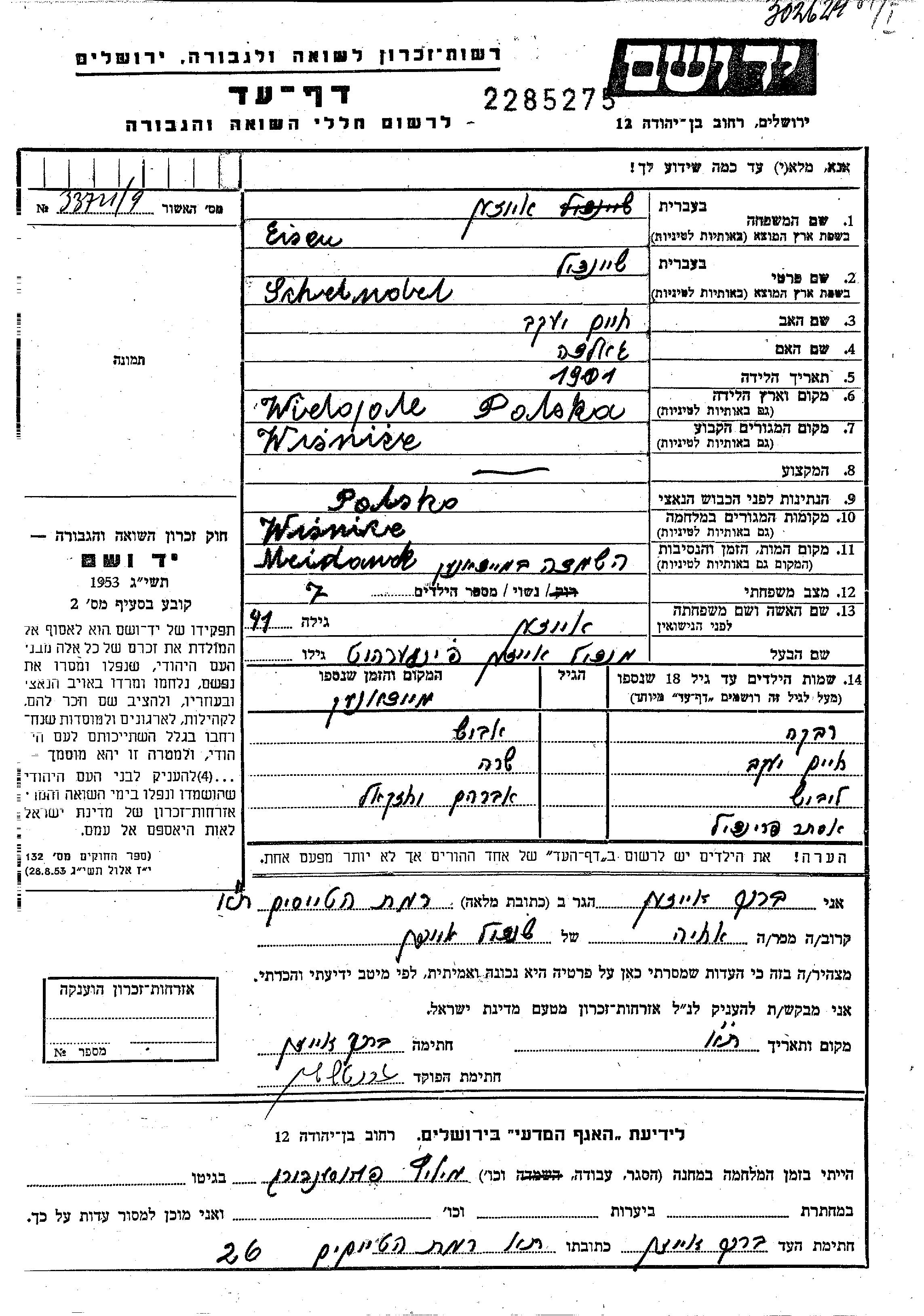 Yad Vashem - Pages of Testimony Names Memorial Collection