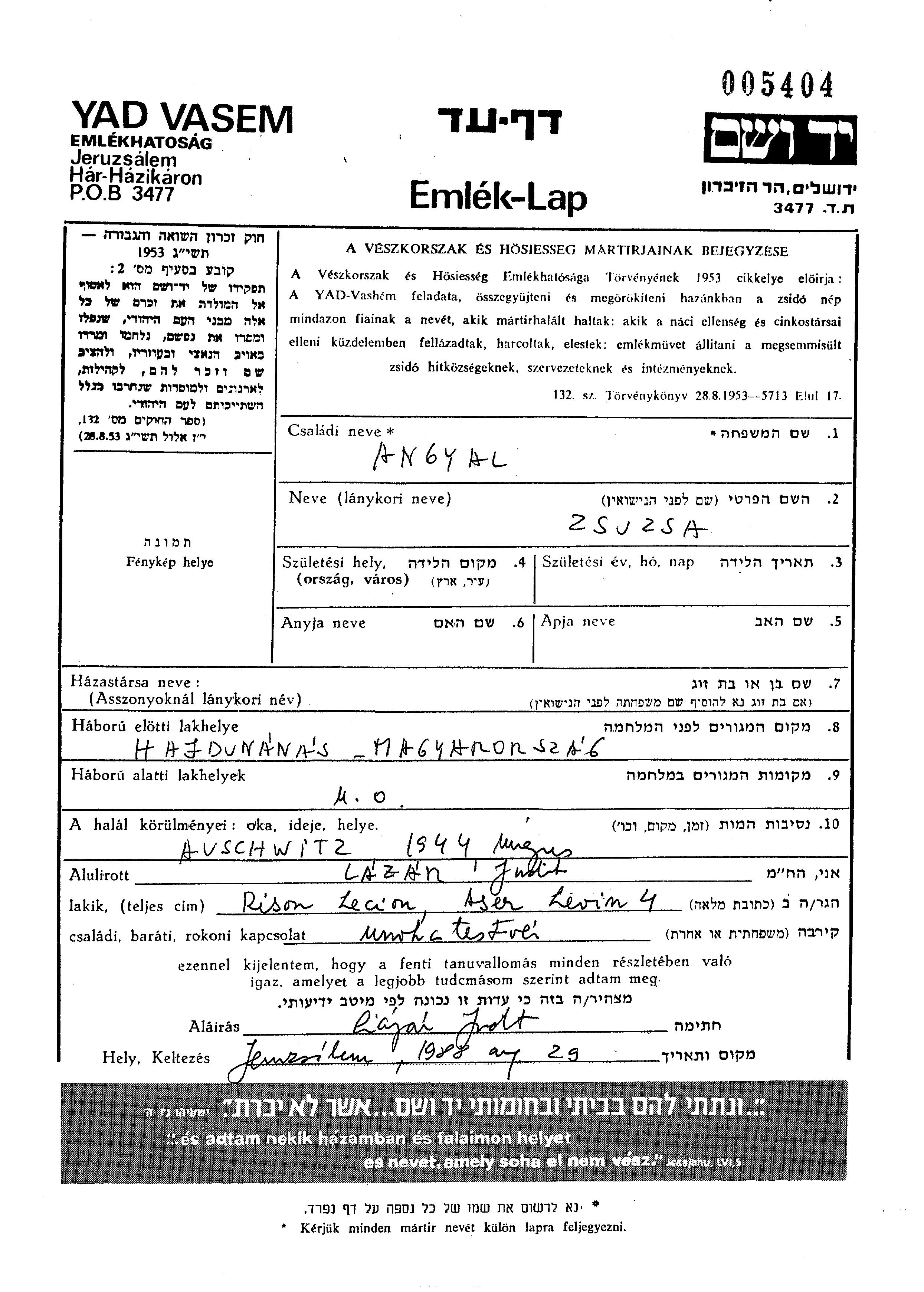 Angyal Zsuzsa Hajdunanas, Hungary Page of Testimony