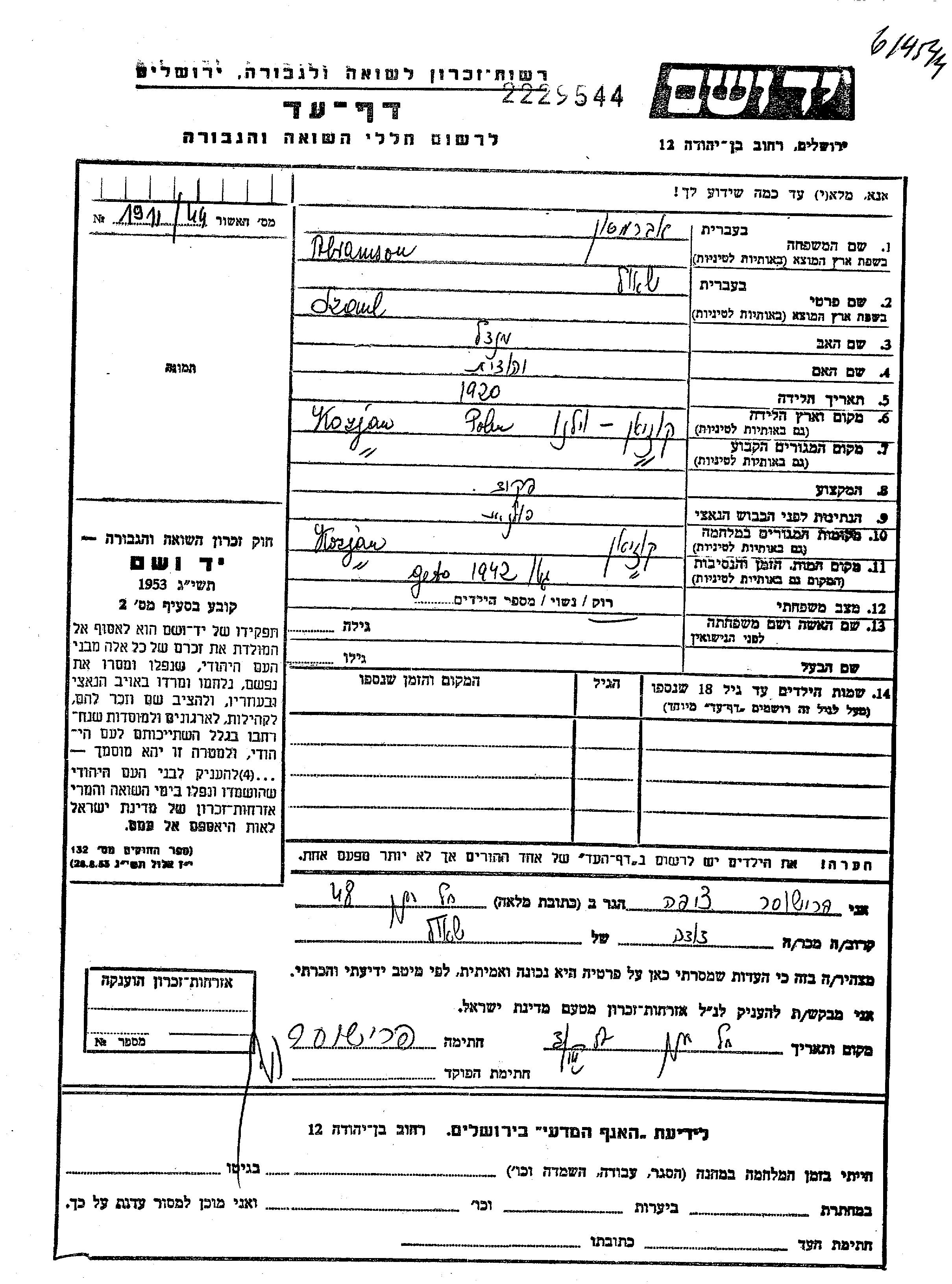 Yad Vashem - Pages of Testimony Names Memorial Collection