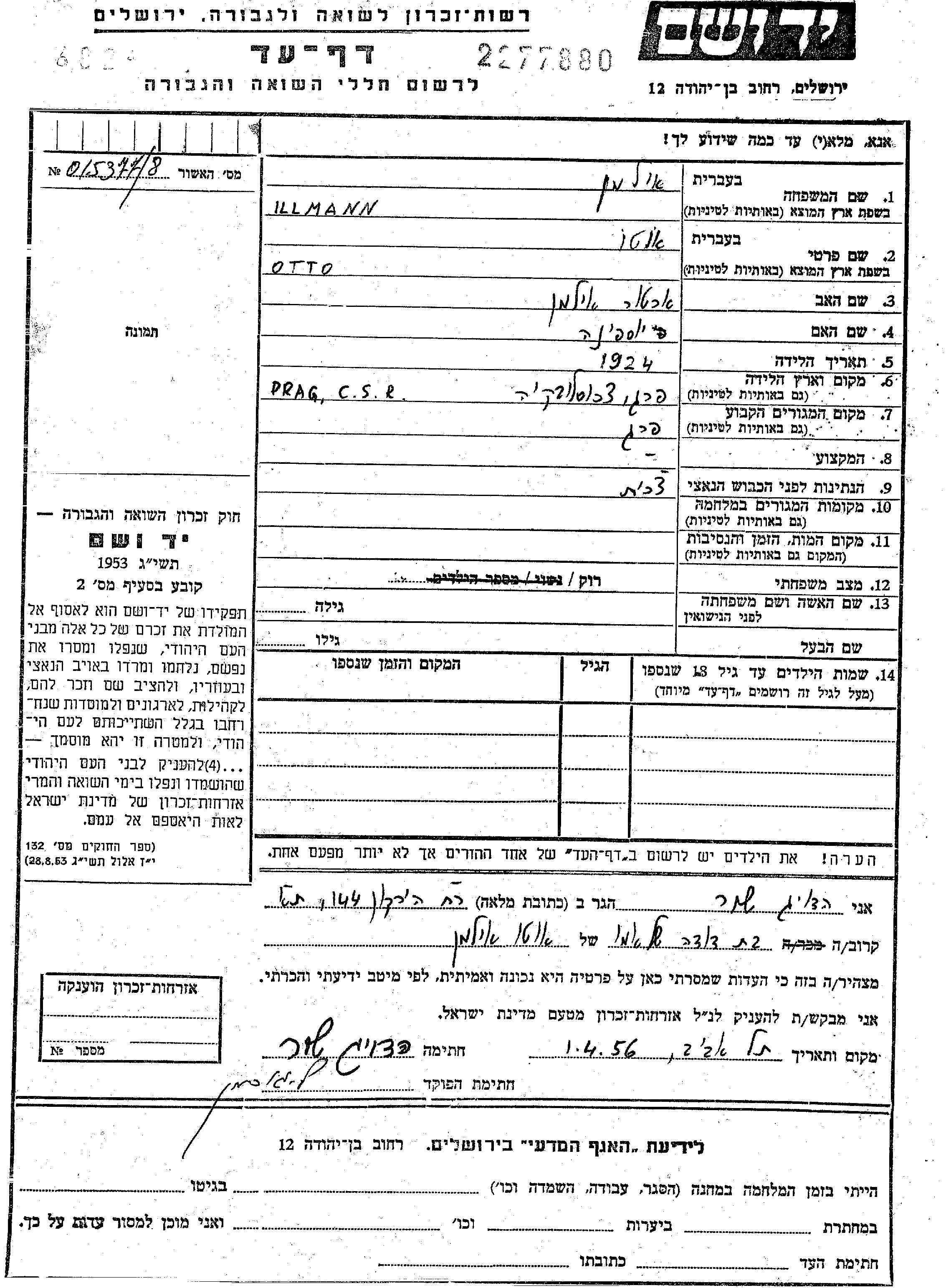 Otto Illmann was born in Praha, Czechoslovakia, 1924 to Artur and Yosefina. He was single.