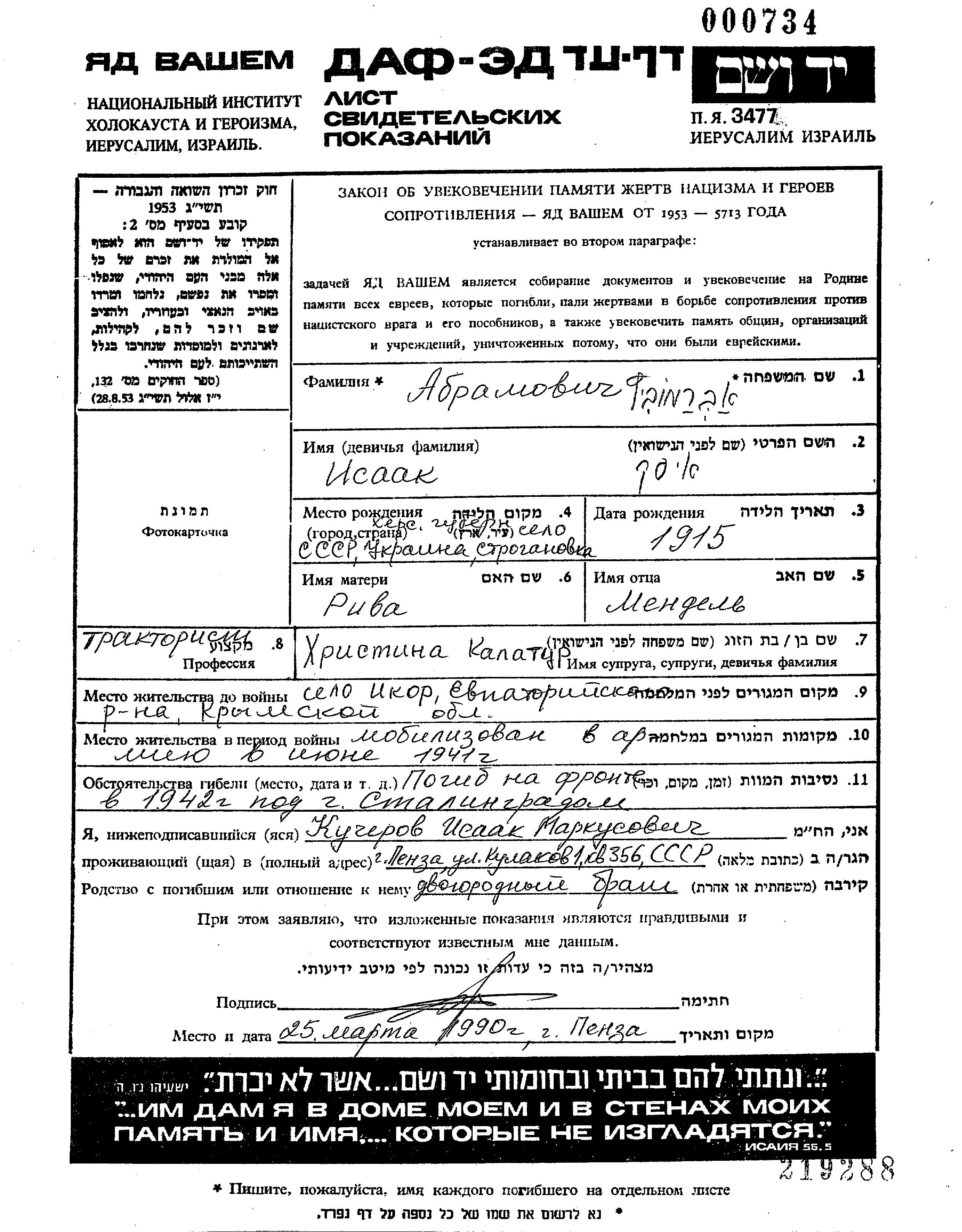 Search by last name of the submitter of the Page of Testimony, including diminutives or nicknames