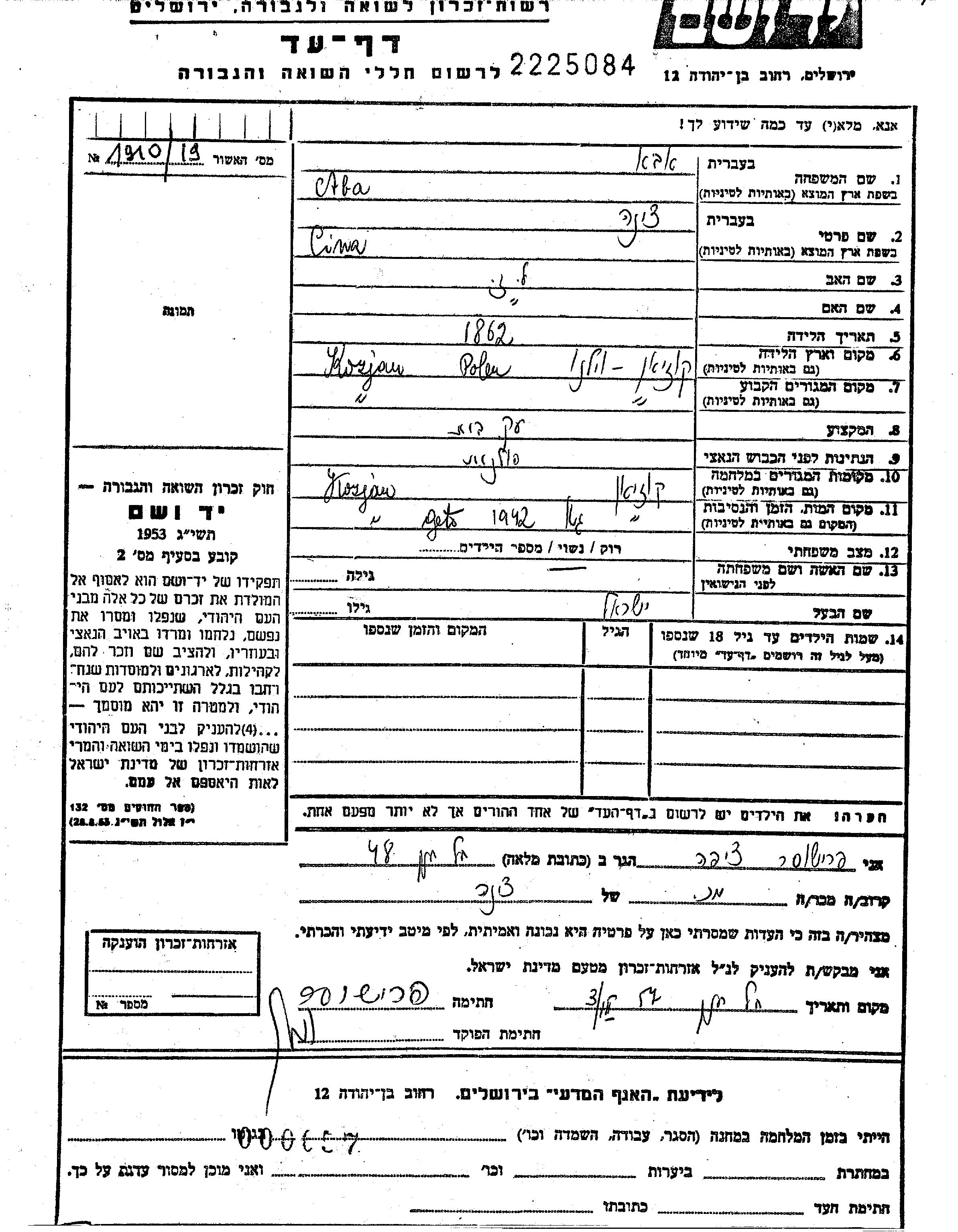 Yad Vashem - Pages of Testimony Names Memorial Collection