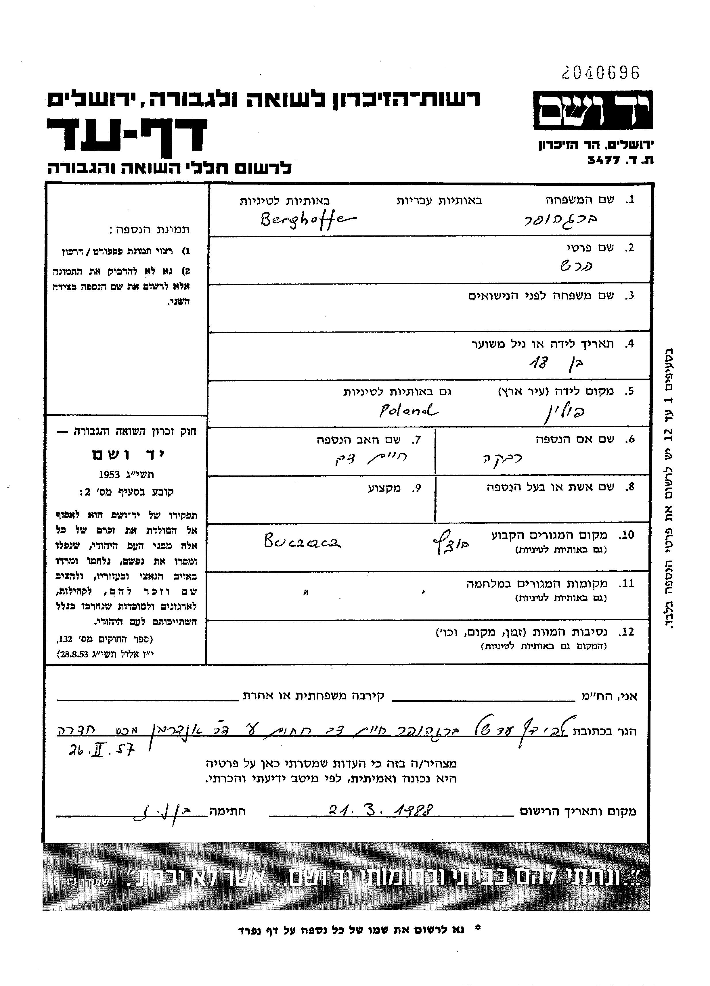 Yad Vashem - Pages of Testimony Names Memorial Collection
